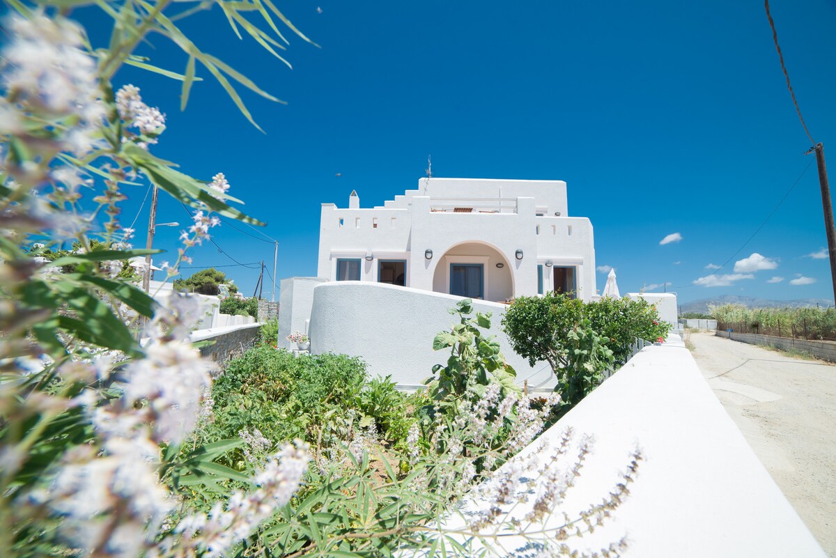 Enjoy a vacation in our cozy 2-bedroom apartment with balconies overlooking the vegetable garden - perfect for a group of 3 or 4. Our Cycladic building is located on the main road within walking distance of many restaurants, bars and the most popular beaches of Naxos. We are located 500m from Agia Anna Beach, 11 minutes from Naxos Town (port) by car and 6 minutes from the airport. Hosts occupy a separate private apartment in the building and are readily available for help and suggestions.