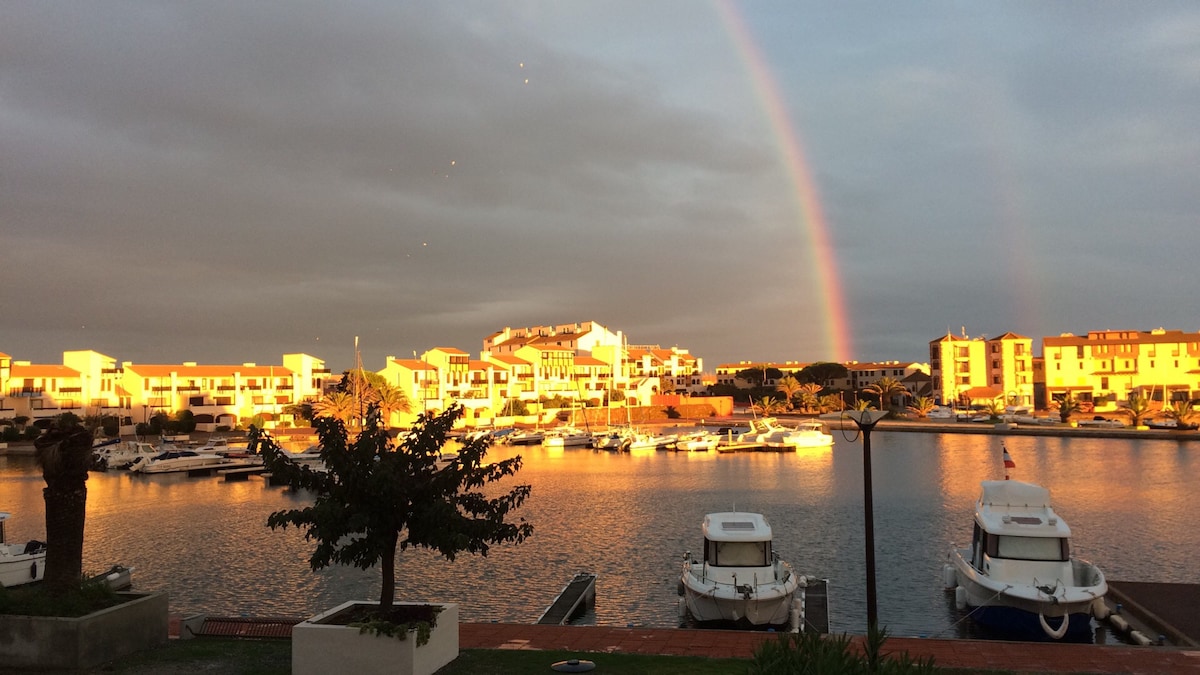 Apartamento na ilha la coudalere em le barcares Com varanda aberta e vista magnífica para o lago marinho e as montanhas Perto do mercado de Natal Vila de férias com piscina Complexo esportivo Brinquedos infantis Entretenimento Praia do lago ao pé da acomodação Pesca, atividades aquáticas Lojas, restaurantes e comércio nas proximidades Acomodação para até 4 pessoas Quarto cabine com beliches Sofá-cama Banheira de hidromassagem Varanda com churrasqueira