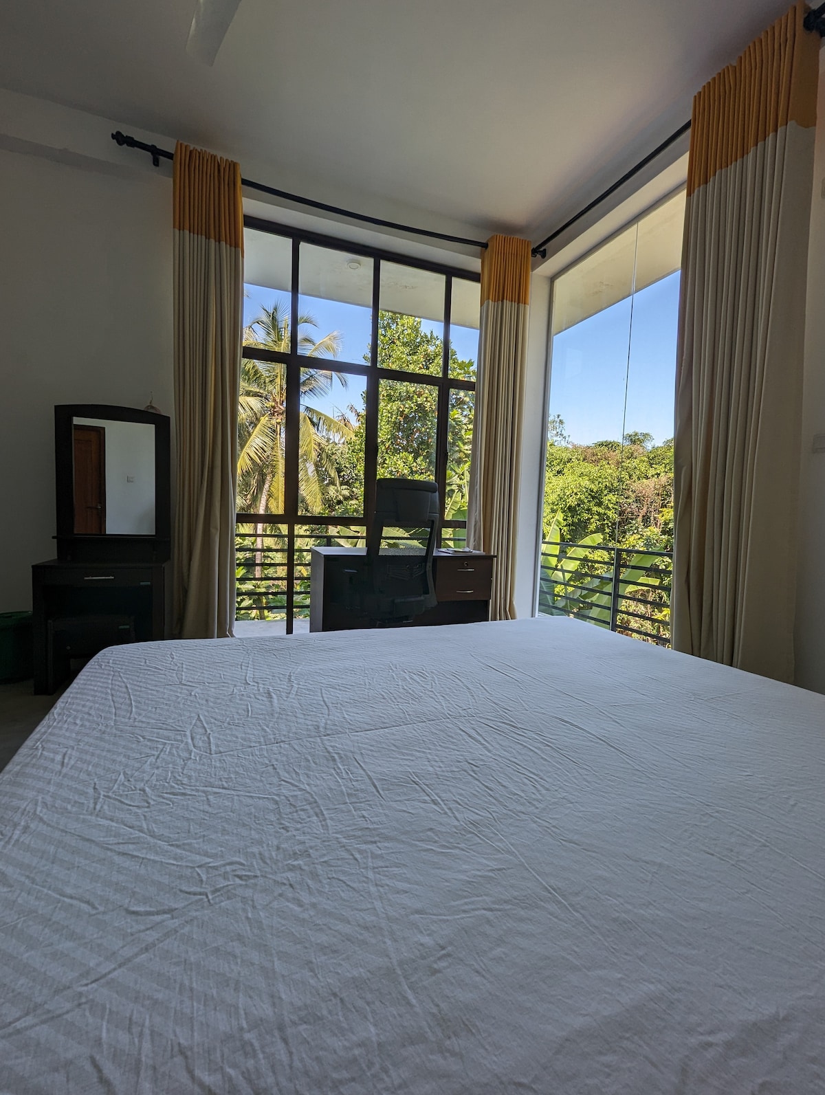 O Green Studio é um refúgio espaçoso de uma cama com tudo o que você precisa para uma estadia perfeita perto da cidade de Galle. Ideal e seguro para uma mulher viajante solteira. Casais são, naturalmente, bem-vindos. Estando a apenas 15 minutos de carro de Tuk Tuk do Forte de Galle e a 10 minutos de carro da praia de Unawatuna, é o LUGAR perfeito para ESTAR Os hóspedes têm acesso ao jardim, piscina, pavilhão de dormir, pavilhão de ioga, pequeno spa e piscina. Para total privacidade, eles têm sua própria varanda com vista para o jardim.