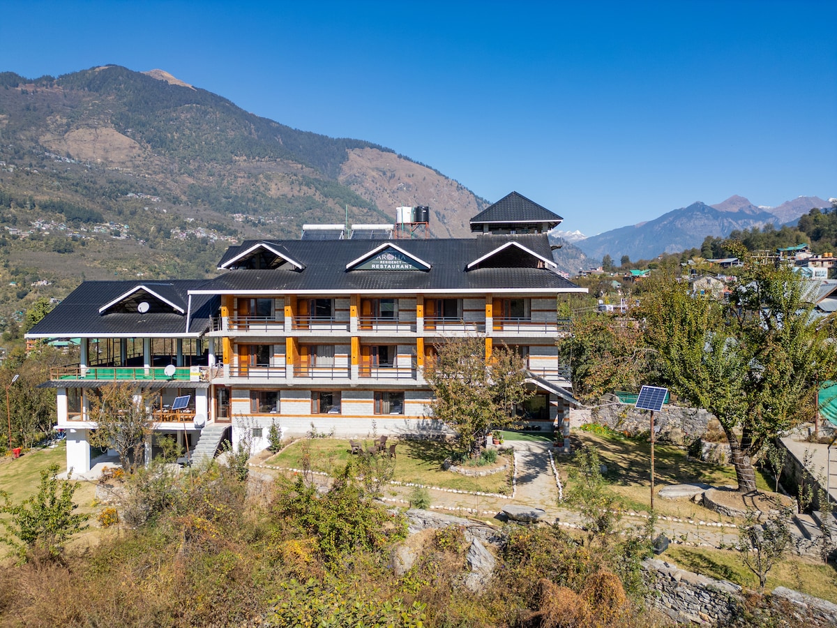 Quarto espaçoso com varanda está localizado ao lado do templo Hadimba Devi a uma distância de 3,5 km da cidade de Manali. O quarto possui paredes coloridas, camas confortáveis, pequena área de estar e vistas hipnotizantes do nascer do sol e do vale com varanda privativa. Um ventilador, TV a cabo e cofre pessoal estão incluídos. Os banheiros privativos têm um chuveiro. O restaurante de culinária cum bar serve pratos mais escolhidos e uma grande variedade de coquetéis e mock-tails do mundo inteiro para atender ao sabor variado dos viajantes.