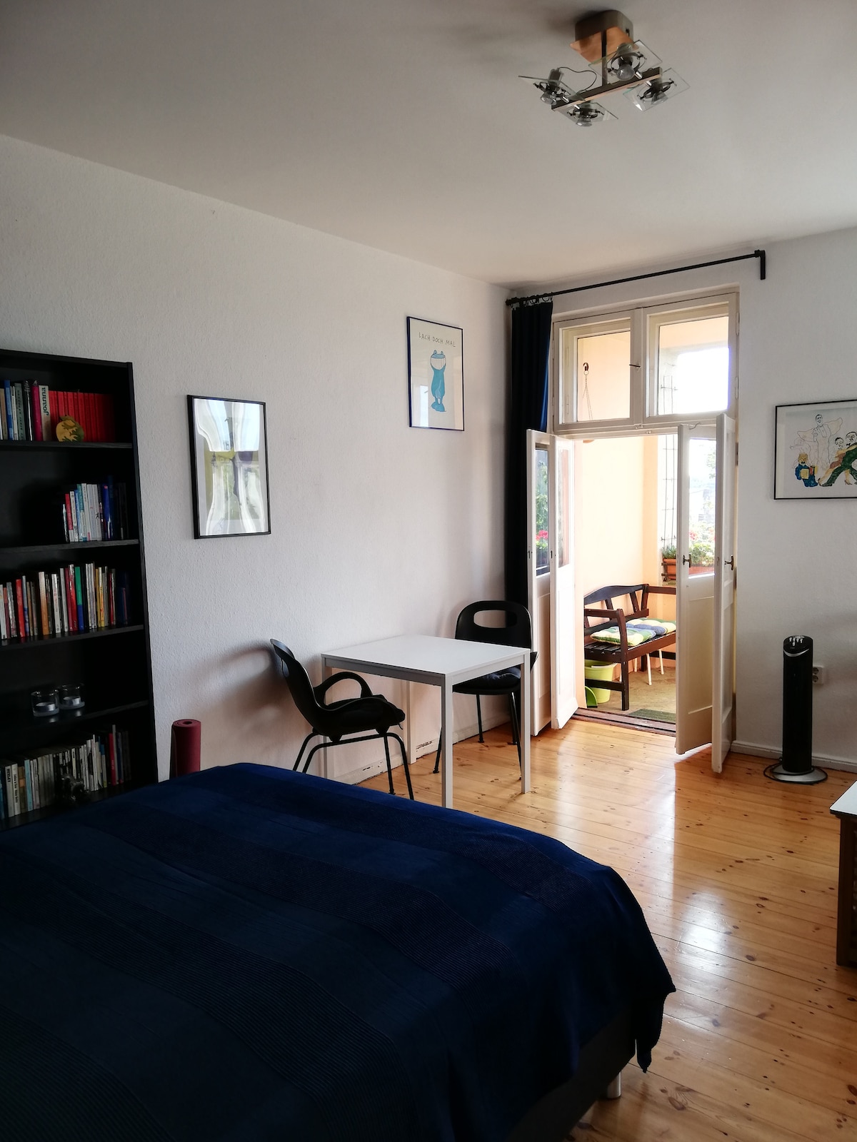 Somos uma família sediada em Berlim e alugamos com sucesso parte do nosso apartamento há nove anos. Com 38 m², nosso espaço acomoda confortavelmente três adultos ou uma família. O apartamento inclui quarto, uma acolhedora sala de estar com um sofá-cama e um banheiro. Cada quarto tem sua própria porta, garantindo o máximo de privacidade e conforto. Se você está planejando uma visita curta ou uma estadia mais longa em Berlim, nossa acomodação oferece o retiro perfeito da agitação vibrante e diversificada da cidade.