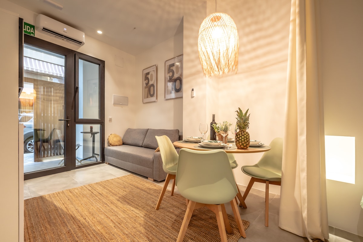O design nórdico elegante encontra a vida espanhola acolhedora nesta casa onde cores ousadas destacam a decoração contemporânea. Relaxe nos espaços abertos tranquilos ou relaxe na varanda ensolarada com vista para as ruas. Você pode desfrutar de um momento refrescante no espaçoso banheiro ou preparar uma refeição deliciosa com a cozinha totalmente equipada e mobiliada. E quando você estiver cansado do seu dia de exploração na cidade, nada melhor do que a calma do quarto e a cama confortável.