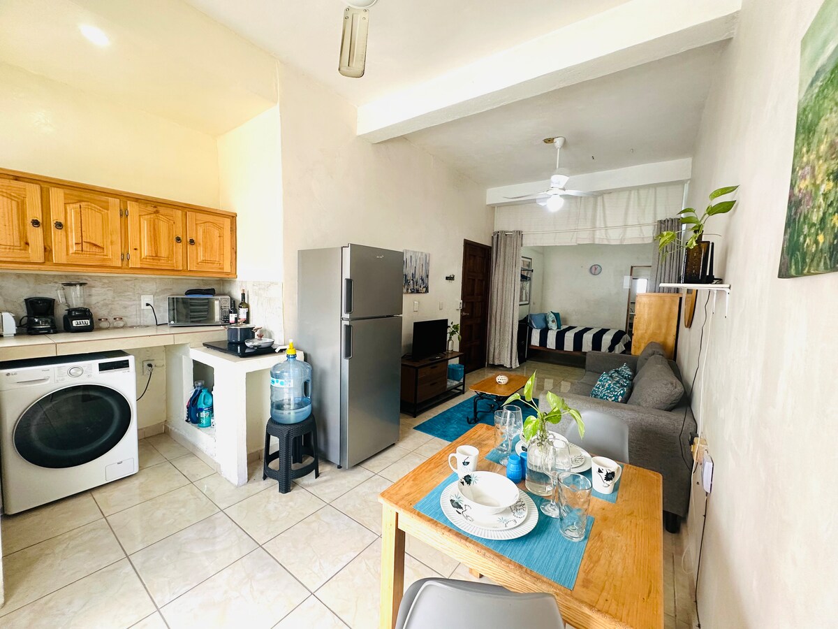 🌴 Apartamento moderno no coração de Sayulita. A apenas 1,5 quadras da praia e a 2 da praça, você pode caminhar por toda parte — restaurantes, cafés e vida noturna. Acomoda até 4 hóspedes com uma cozinha totalmente equipada, Wi-Fi, terraço no último piso e acesso à piscina. Por estar localizado no centro, atividades ocasionais na rua podem ser ouvidas, especialmente nos fins de semana. Perfeito para casais, amigos ou famílias pequenas que procuram experimentar a atmosfera vibrante de Sayulita.