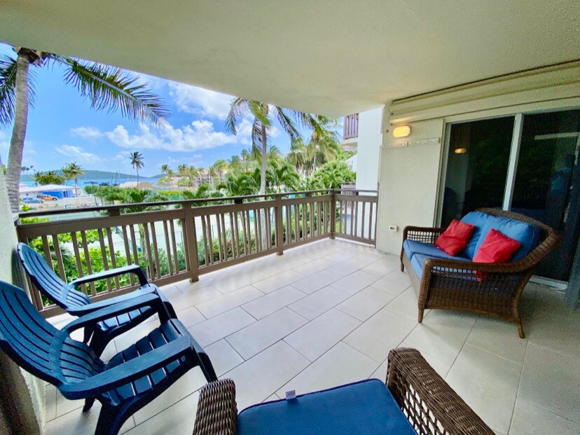 Bem-vindo ao nosso paraíso. Nosso apartamento de 2 camas e 2 banheiros fica a poucos passos da praia, bem como da piscina, quadra de tênis e sala de exercícios. Relaxe no pátio com vista para o mar e brisa agradável. Nosso apartamento (unidade 114) também fica a uma curta caminhada de 2 restaurantes e fica ao lado do St. Thomas Yacht Club (se você é membro da United States Sailing Association, deve ter privilégios recíprocos no clube). Estamos localizados perto de Red Hook, com inúmeros restaurantes, bares e lojas.