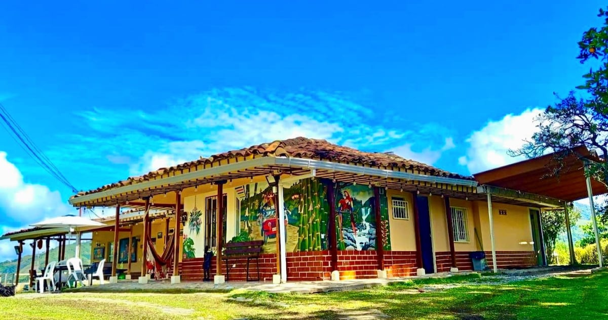 Propriedade independente localizada na Pacific Highway 3, a 35 minutos de Manizales, chegando ao Km 41. Possui 4 quartos amplos, acomoda 16 pessoas, 4 banheiros, TV espaçosa com Wi-Fi, jacuzzi, churrasqueira coberta, área de bronze, jardins, estacionamento para 6 veículos. Durante o dia, você pode desfrutar da natureza, fazer caminhadas, observar pássaros, etc., e à noite você desfrutará de uma vista espetacular e do som do rio Cauca.