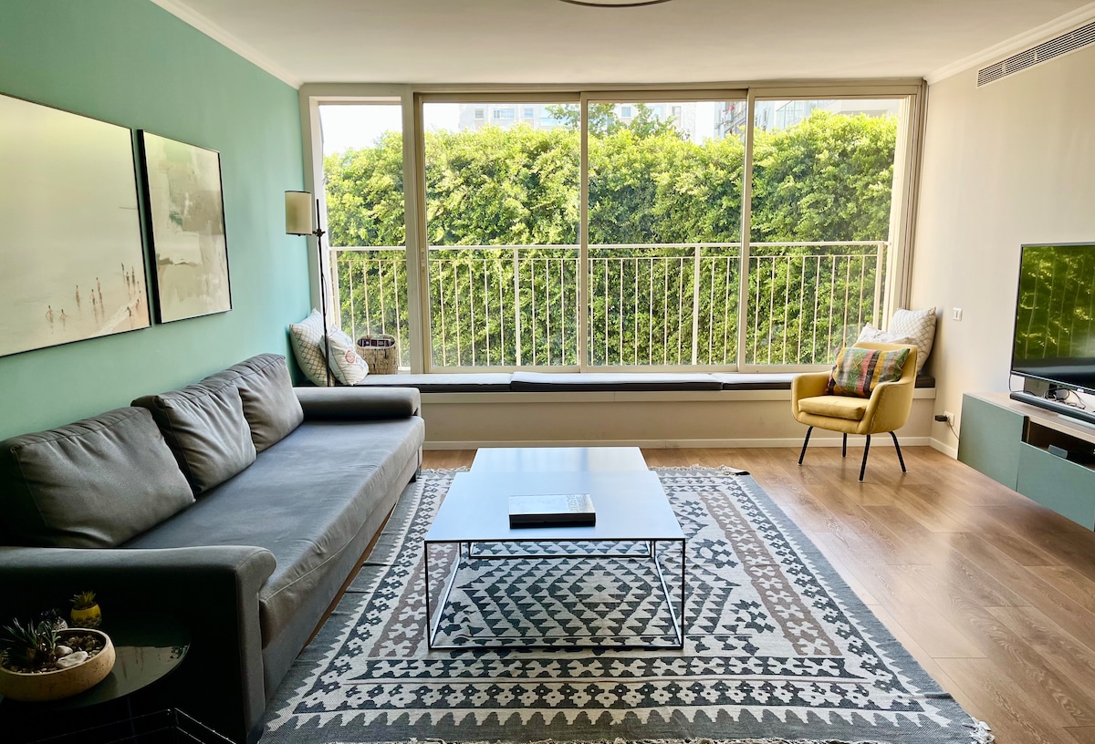 Apartamento de dois quartos recém-renovado no térreo com abrigo antiaéreo (Mamad), pátio e pequeno jardim. Aproveite o bairro verde e tranquilo, remoto de uma rua. Você poderá desfrutar da máquina de café expresso, uma cozinha totalmente equipada, ar-condicionado poderoso e tranquilo, um pátio com um dossel retrátil, um pequeno jardim e um moderno MAMAD (abrigo antiaéreo). Localização “Green Ramat-Aviv”. A poucos minutos a pé da Universidade de Tel-Aviv, do shopping Ramat-Aviv, do centro comercial Brodetzky e do Parque Yarkon.
