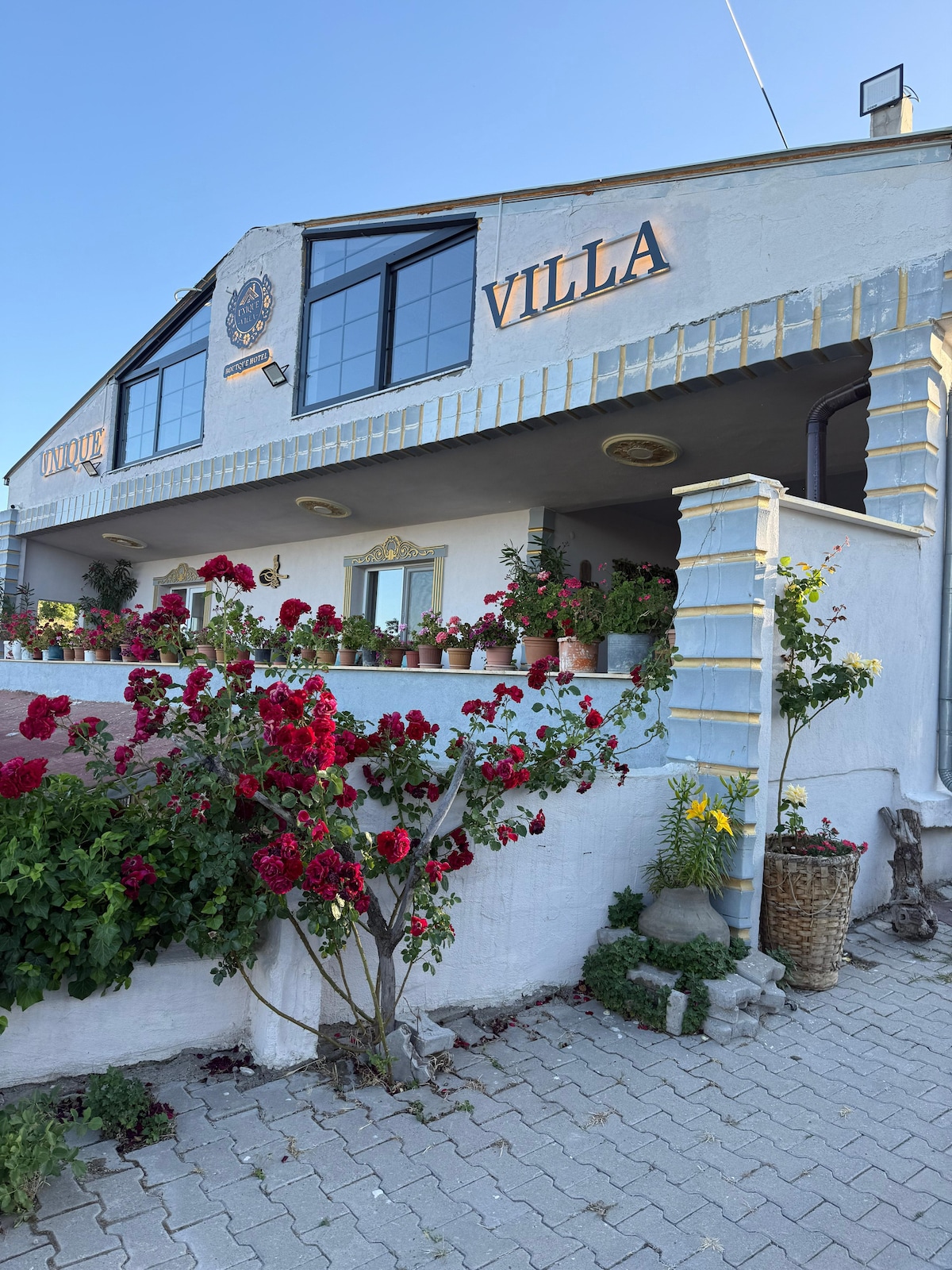 Nosso belamente restaurado Boutique Hotel está em uma localização muito tranquila e central no coração da cidade de Goreme. Tem belas vistas das grutas da Capadócia e balões de ar quente. A propriedade foi restaurada por um arquiteto local com alguns toques modernos para torná-la confortável para os visitantes. A propriedade tem uma grande área de jardim e um terraço incrível que é perfeito como um aluguel exclusivo para eventos e ocasiões especiais (jantares, casamentos, aniversários... etc)