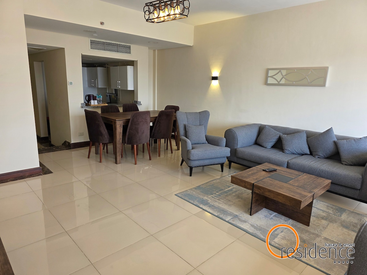Modern two-bedroom apartment featuring two bathrooms, a fully equipped kitchen, a bright reception area, and a private balcony. Perfect for short or long stays, offering comfort and convenience in a stylish setting. Ideal for families, couples, or business travelers looking for a cozy home away from home.