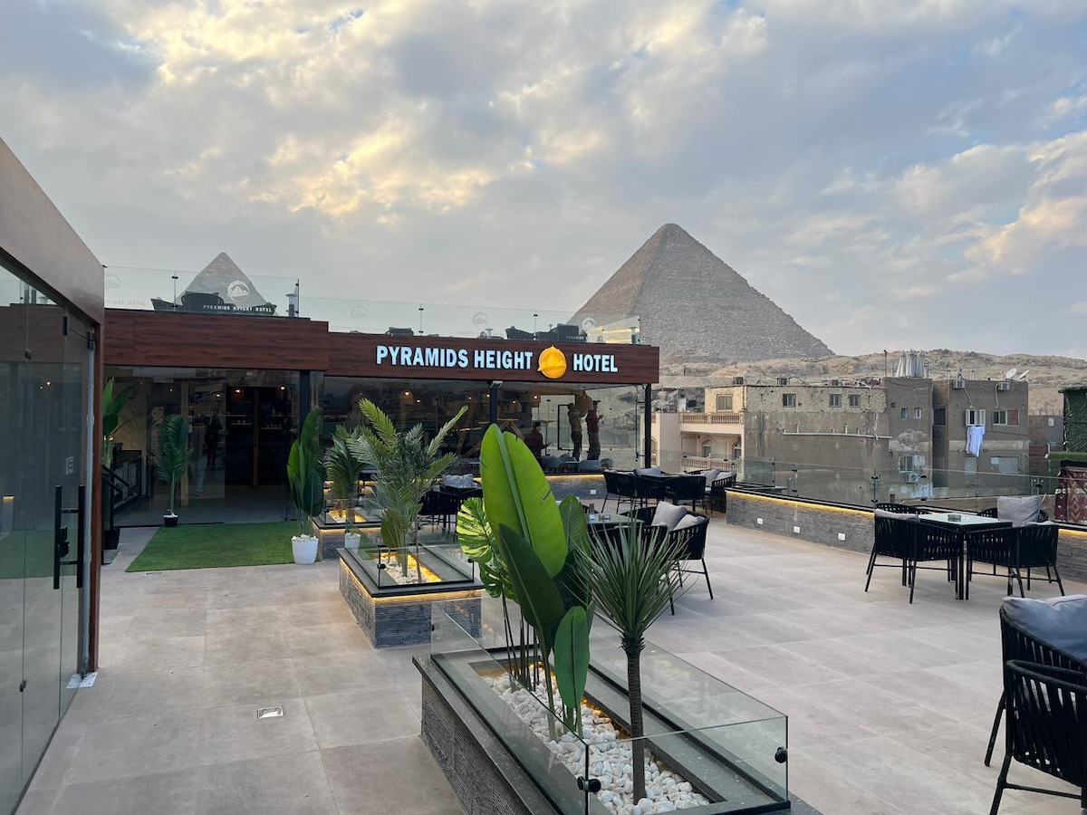 Quarto de hotel de luxo com vista direta para as pirâmides