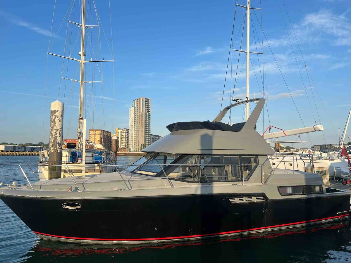 Uma oportunidade única para ficar a bordo deste iate recentemente renovado atracado na bela Ocean Village Marina. Espaço para até 5 hóspedes dormirem (2 casais e um solteiro) Ideal para casais, famílias ou pequenos grupos de amigos para experimentar a vida na marina. 2 quartos com banheiro privativo, sala de estar, cozinha acoplada, terraço, varanda e um espaçoso flybridge Pacotes personalizados disponíveis, incluindo chás da tarde, recepção com champanhe, aniversários, pacotes de acesso ao spa (a uma curta distância a pé). Por favor, pergunte para saber mais
