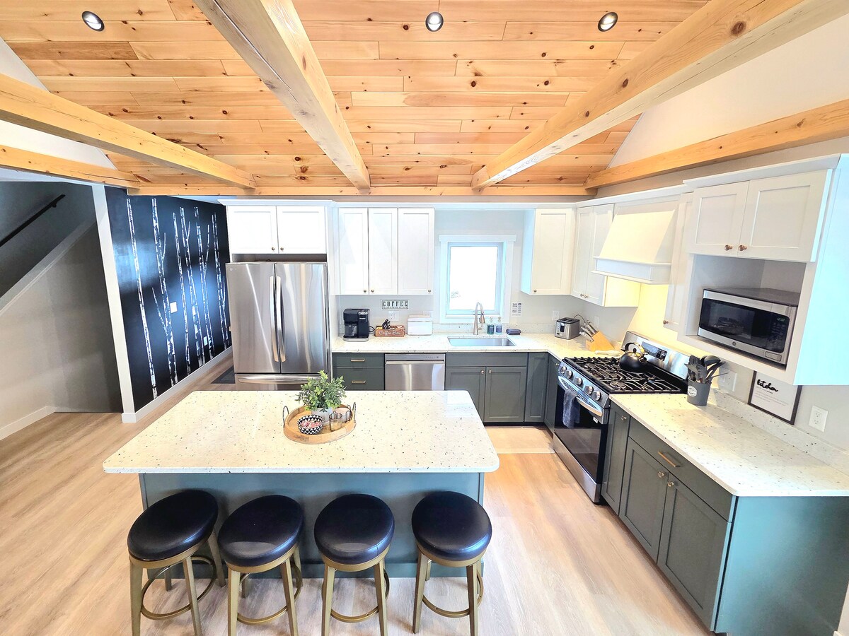 Aninhado do outro lado da rua do pitoresco Lago Baxter, o Camelot Chalet é uma deslumbrante casa de 4 quartos, construída em 2022, que acomoda confortavelmente de 12 a 14 hóspedes. Está planejando uma viagem de outono relaxante, com dias no lago e aventuras ao ar livre ou uma viagem de inverno aconchegante para desfrutar de paisagens nevadas e noites ao lado da lareira? Este retiro oferece o cenário perfeito para suas férias sazonais. (Observação: a IA do Airbnb pode afirmar que nossa casa fica "no lago" - fica do outro lado da rua)