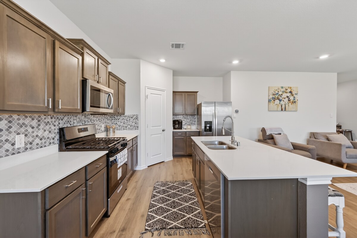 Experimente o centro histórico de McKinney neste bangalô de 3 quartos que combina charme vintage com vida contemporânea, ideal para casais ou famílias. A apenas um quarteirão da praça da cidade, ele possui uma espaçosa área de estar com uma cozinha totalmente equipada e mesa de jantar cheia de luz natural. Janelas expansivas com vista para um quintal aconchegante e privado e pátio com assentos e grelha a gás. As comodidades incluem Wi-Fi de alta velocidade, roupas de cama de pelúcia, ar condicionado, máquina de gelo de seixos e máquina de lavar e secar roupa. Reserve sua estadia agora!