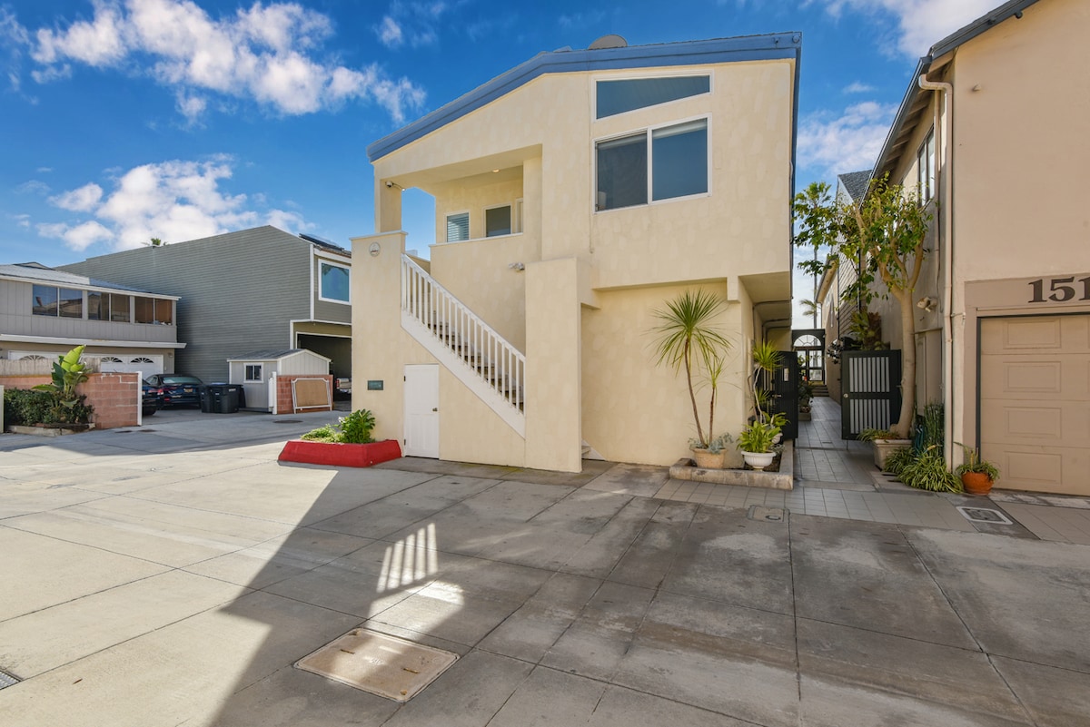 Descubra o Surf Casita — um moderno e impecável 2BR familiar a passos da areia, do píer e da orla. Relaxe perto da fogueira ou jante no seu pátio privativo. Durma profundamente em uma cama king de luxo com ar-condicionado e acorde com o ar fresco do oceano. ✓ Caminhe até tudo (não é necessário carro) ✓ Ar condicionado em todos os cômodos (raro em Newport) ✓ Estacionamento na garagem + carregador de veículos elétricos ✓ Lounge externo privativo: churrasqueira e fogueira ✓ TV de 85" e streaming de música ✓ Itens básicos de praia incluídos Esta joia é reservada rapidamente — reserve suas datas agora.