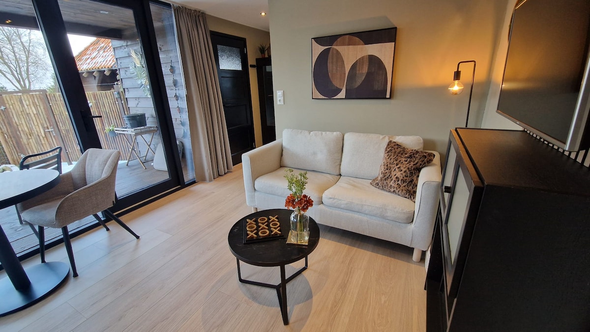 Rust & natuur – sfeervol gastenverblijf met terras. Rust, comfort en sfeer in gastenverblijf LiV. Laat de dagelijkse drukte achter u en kom ontspannen in dit stijlvol ingerichte gastenverblijf met eigen terras in de tuin. Gelegen in een rustig dorp, omringd door natuur en mooie wandel- en fietsroutes. Alles is aanwezig voor een comfortabel verblijf, met parkeergelegenheid voor de deur. Een fijne plek om tot rust te komen en nieuwe energie op te doen.