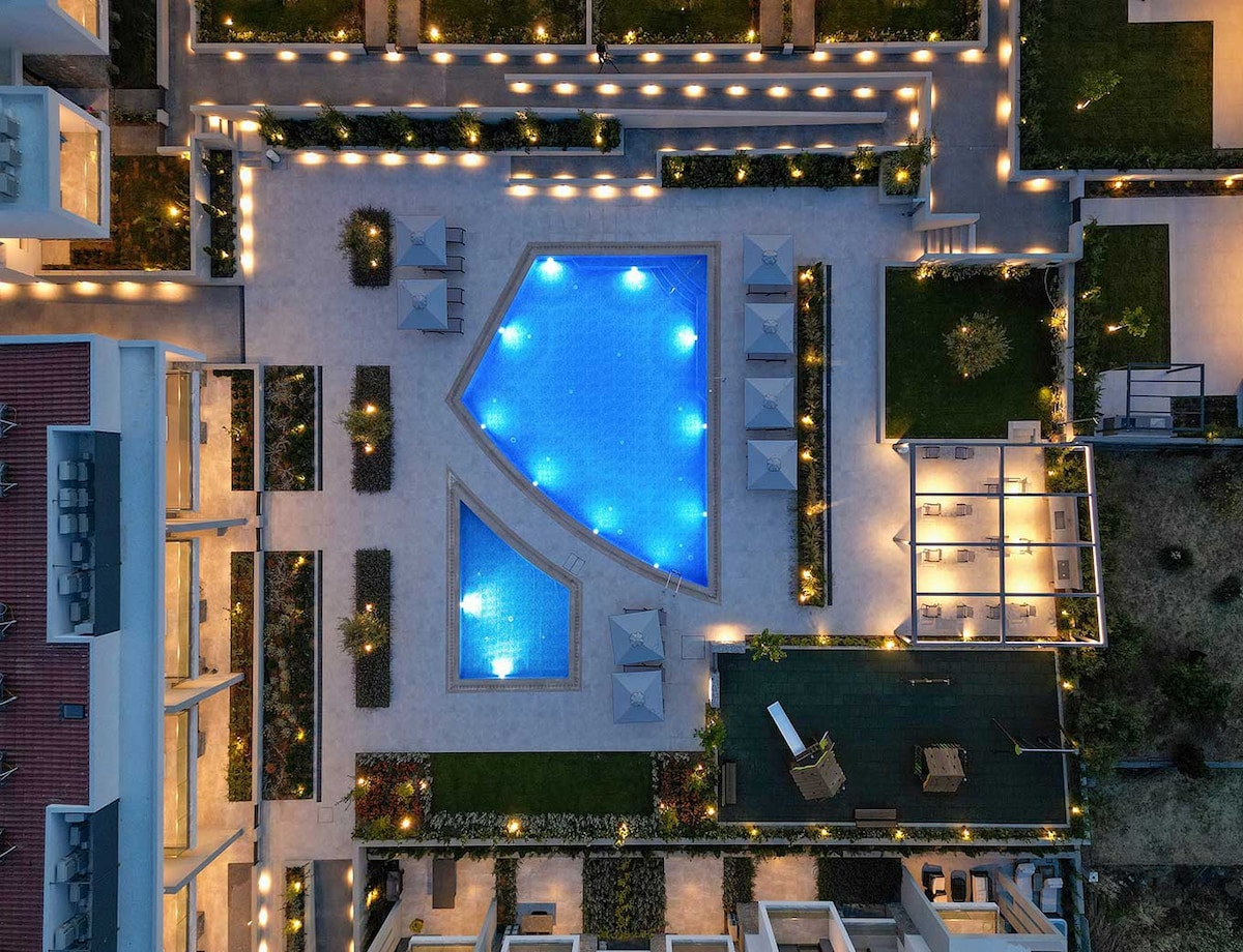 Receber você no meu apartamento de férias que está localizado a 350 metros do mar e a 10 minutos a pé da rua comercial e do início da avenida principal da praia de Nikiti. Experimente a cultura, delícias culinárias, configuração de férias perfeita com belas praias na região ou simplesmente aproveite seu tempo de qualidade em família relaxando neste ambiente moderno e confortável de Olea Valley. Este complexo premium recém-construído tem piscinas de alta qualidade, churrasqueira com instalações para refeições, bem como área de jogos para crianças.