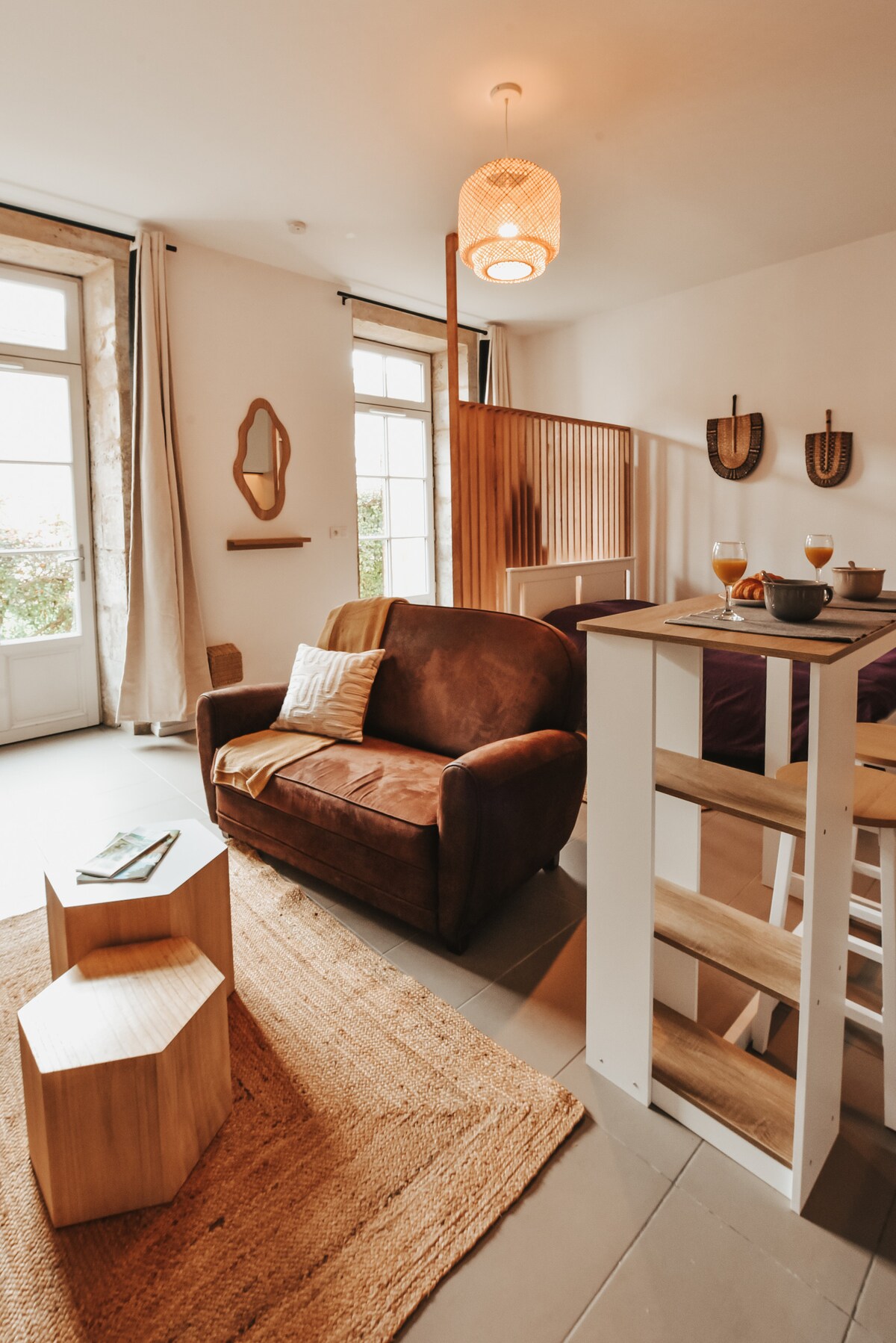 Relaxe neste apartamento tranquilo e elegante de 32m2 recentemente reformado no centro histórico de Chauray. Você terá uma vaga de estacionamento privativa segura, um espaço externo privativo. Este alojamento é composto por uma cama king-size de qualidade hoteleira, uma sala de estar, uma sala de jantar, cozinha e banheiro separados. Idealmente localizado, você estará perto de todas as lojas, a 8 minutos da entrada da rodovia A10, a 15 minutos de Niort, a 20 minutos do pântano Poitevin, a 1 hora de Poitiers e La Rochelle.