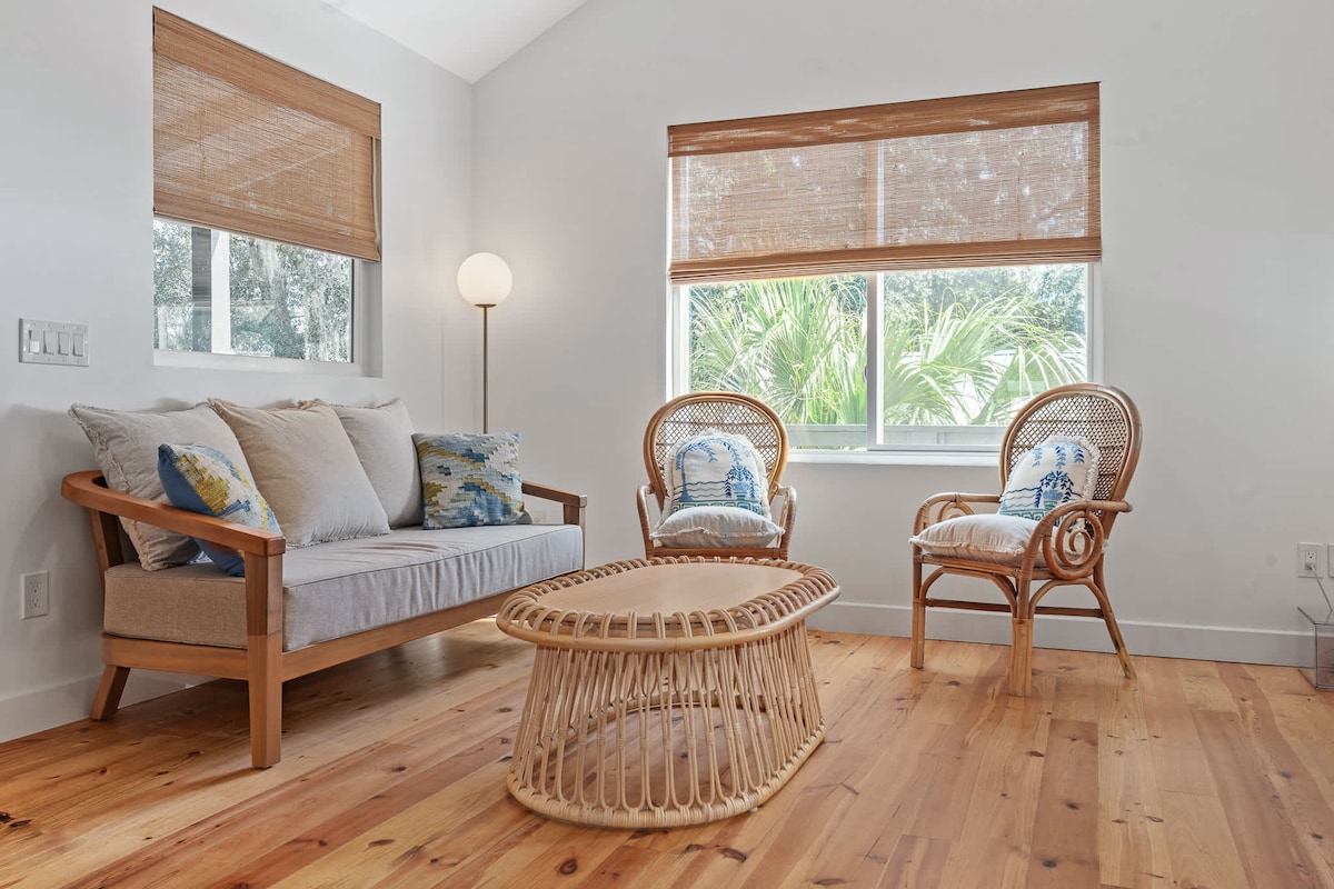 Um quarto, um banheiro, vibe de casa de campo aconchegante! Retiro perfeito para casais. Esta é uma metade de um duplex. A segunda metade está vaga no momento. Excelente localização. 5 quarteirões para o farol. 1,6 km para o centro histórico. 2 km para o Anfiteatro. 1,3 km para o Parque Estadual de Anastasia. 4,8 km para o St. Augustine Beach Pier. A uma curta distância a pé de muitos restaurantes e bares, mini-golfe e lojas boutique! Caminhe ou vá de bicicleta até o centro da cidade!