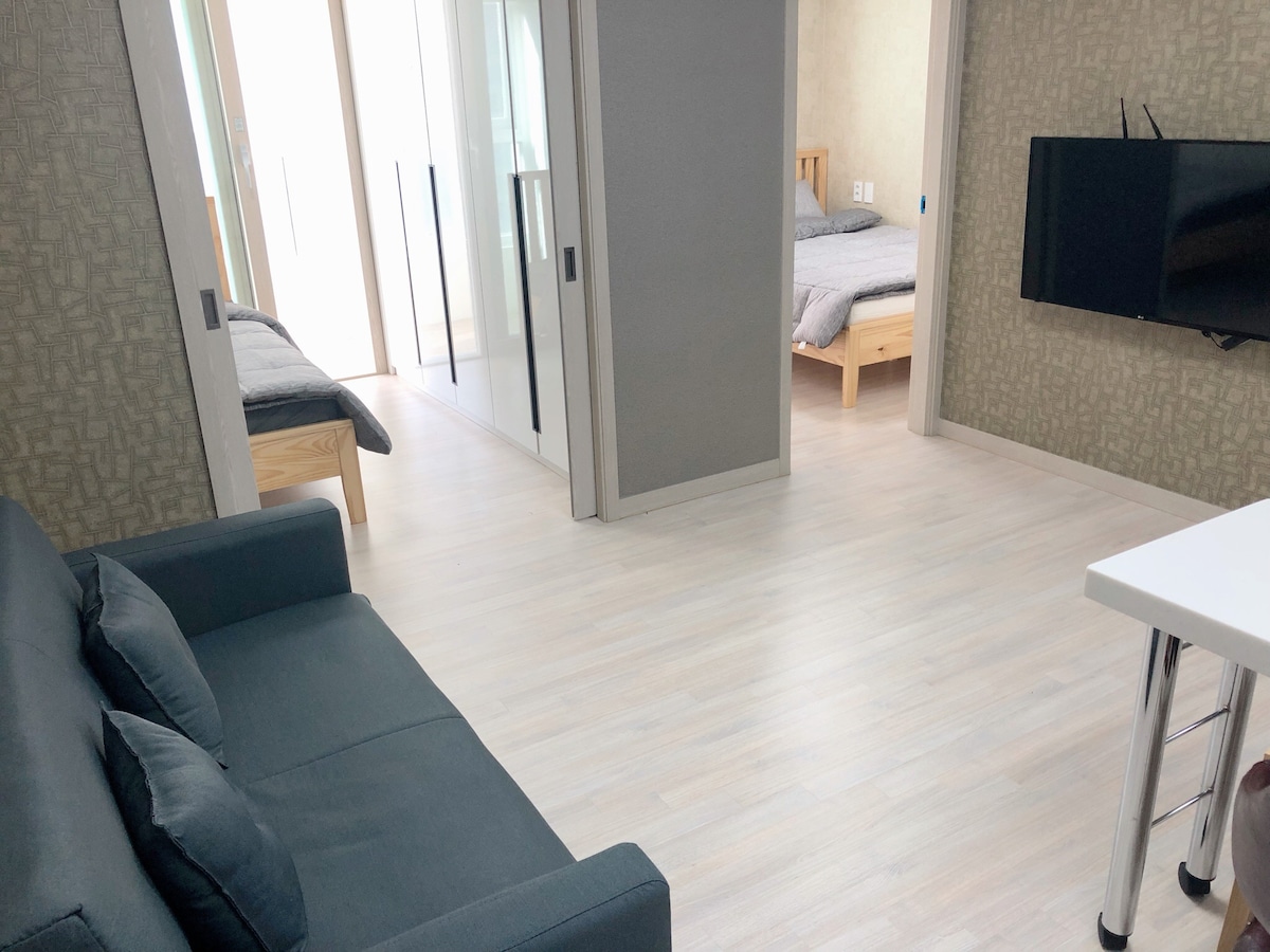 Preço especial de abertura 64 / 5 minutos do aeroporto # Opções completas # Móveis novos # Casa moderna # Intertravamento # Nova Jeju # Nova loja de duty free # Armazenamento de bagagem OK