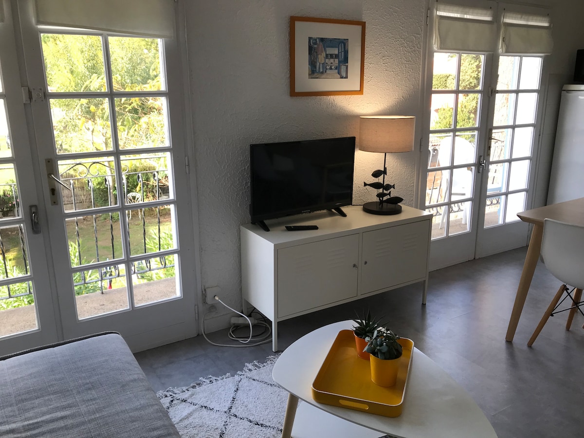 Desfrute do ar do mar neste estúdio luminoso e lindamente decorado de 21m2, incluindo cozinha equipada, chuveiro e área de estar. Você desfrutará de seu terraço privado equipado com móveis de jardim e churrasqueira. Estacionamento + 2 mountain bikes disponíveis. A praia de La Davière e suas dunas estão a 900 m da acomodação. Restaurante a 50 m de distância, aberto o ano todo. Supérette Les Tonnelles a 1,5 km de distância, aberto no verão. Centre Ville St-Jean-de-Monts: 5 min de carro/15 min de bicicleta O mesmo que Notre-Dame-de-Monts
