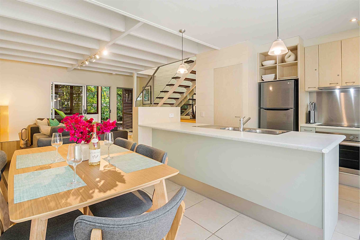 A experiência completa de Noosa com residência em apartamento de luxo tranquilo recém-reformado com pátio privado; perto da floresta tropical; e 4 minutos a pé da deslumbrante Little Cove Beach e da sofisticada Hastings St. Caminhada fácil até o Parque Nacional e transporte. Roupa de cama fornecida. Ar condicionado, Wi-Fi, duas TVs Smart Sony 4K de 55", extensa coleção de DVDs e barras de som Bluetooth. Recolha/ entrega de chaves na 41 Hastings St em horário comercial 7 dias por semana. (Depois do horário de funcionamento, a entrega das chaves pode ser organizada.)