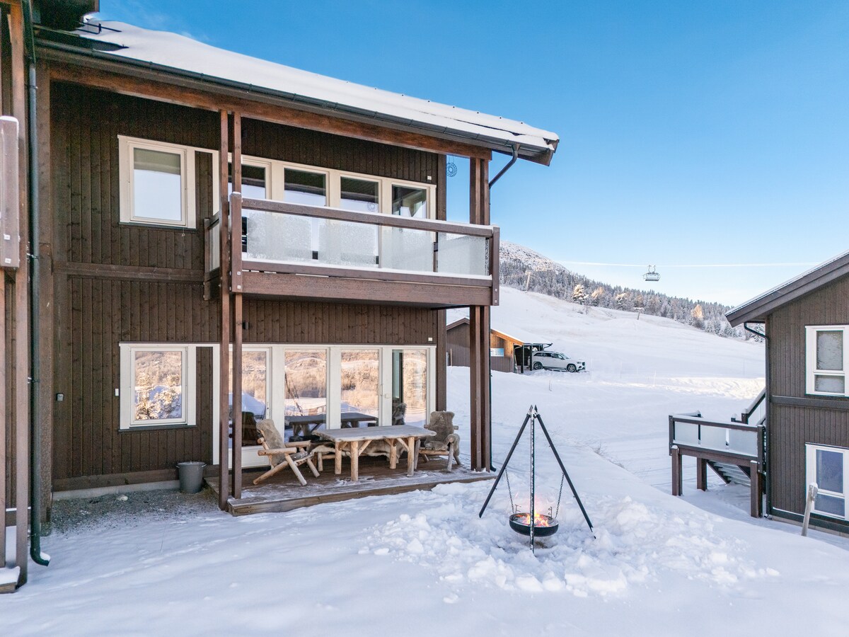 Stor nyoppført hytte med flott plassering øverst i alpinområdet, 100 m til ski-heisen. Langrennsløyper i umiddelbar nærhet. På sommertid har man morgensol på frokostterrasse, før ettermiddagssola strekker seg rundt til stor kombinert terrasse i skifer og tre, med fantastisk utsikt mot Jotunheimen! Flott turterreng hele året. To soverom og to bad i 1. etasje. Hems med to soverom og åpen løsning ned til stue. Stort kjøkken med direkte tilgang til skirom/smørebod. Hytta har elbil-lader.