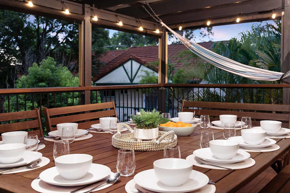 Bem-vindo à sua casa longe de casa em Brisbane - um deslumbrante Queenslander de 5 quartos projetado para famílias, grupos e estadias longas. Localizada no coração de Woolloongabba, esta casa histórica oferece a combinação perfeita de charme atemporal e conforto moderno. Você estará a uma curta distância a pé do Gabba, Southbank, cafés e supermercados — enquanto desfruta de uma vibe tranquila e residencial. As crianças vão adorar o trampolim, brinquedos e livros, enquanto os adultos vão apreciar a cozinha do chef, lavanderia completa, garagem remota e áreas externas serenas.