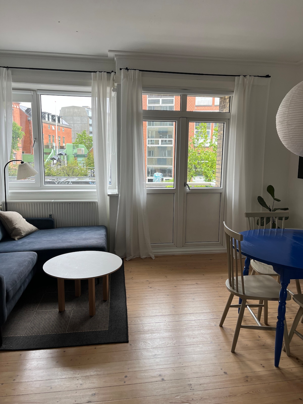Apartamento aconchegante de 81 m ² localizado centralmente em Nørrebro com grande cozinha, sala de TV, quarto, banheiro e varanda. Há uma porta dupla francesa entre o quarto e a sala de estar que pode ser fechada para que se transforme em dois quartos. Na sala de estar há um sofá cama que pode ser dobrado para uma cama de 140 cm, que é muito confortável para dormir. O apartamento fica muito perto do metrô, então você pode facilmente e rapidamente se locomover para os muitos pontos turísticos de Copenhague. Além disso, fica próximo a supermercados, restaurantes e parques verdes.