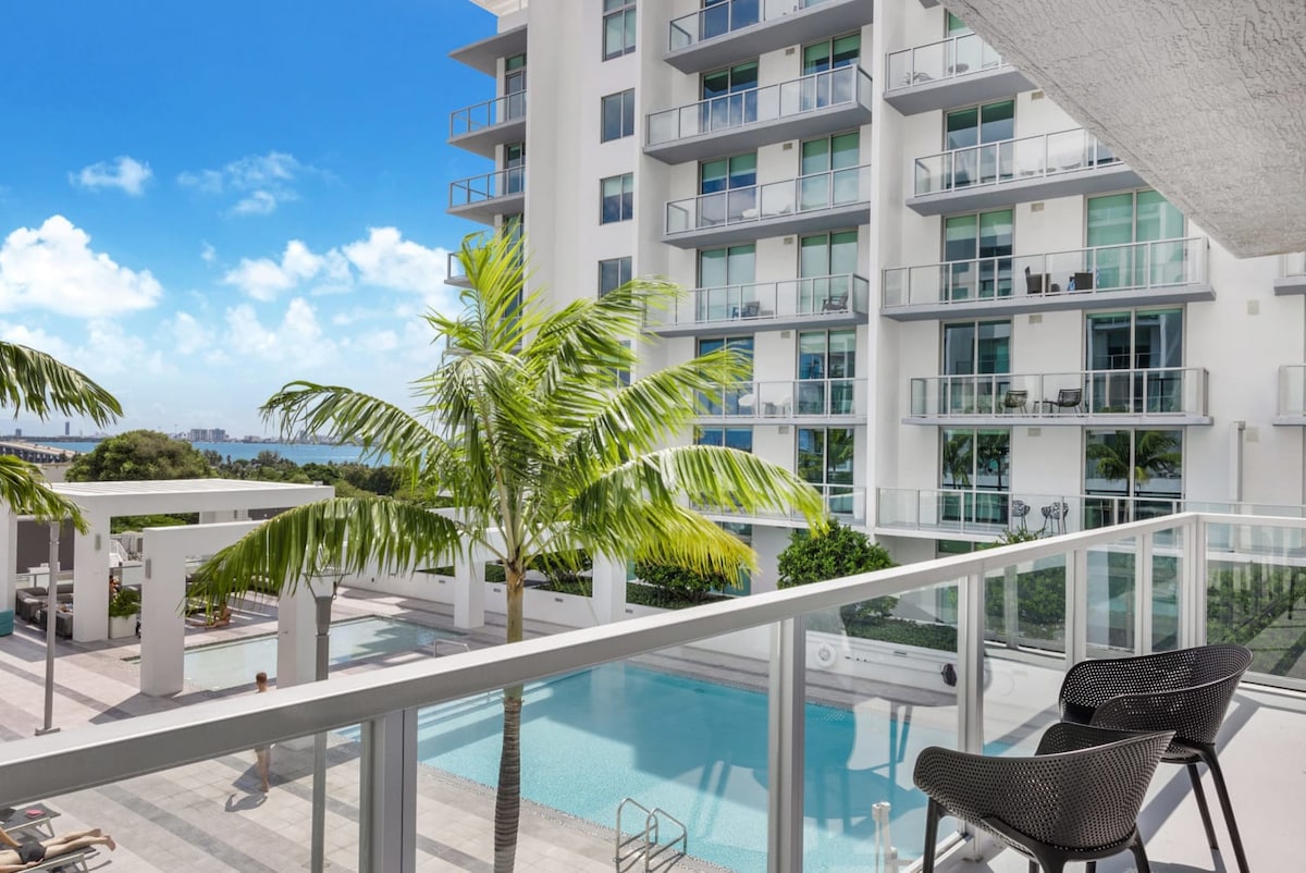 Condomínio de luxo inteiro no Quadro, no Design District de Miami. Totalmente mobiliado e equipado - Estacionamento gratuito, café, Wi-Fi e cabo. O edifício dispõe de comodidades de estilo resort no 6º andar, incluindo um centro de fitness com um estúdio de ioga/spinning, um lounge com áreas de co-working/conferência e uma sala de jogos, uma área de jantar ao ar livre com uma cozinha de verão e churrasqueiras, uma piscina com cabanas com vista para a Baía de Biscayne. A 10 minutos de carro do aeroporto de Miami, a 15 minutos de carro de Miami Beach. Caminhe até Wynwood e Midtown.