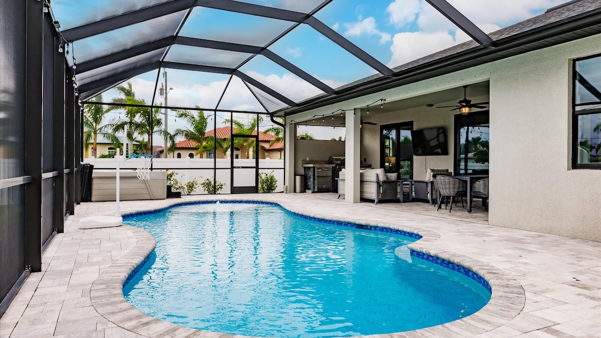 Queremos ser seus anfitriões em Cape Coral! Vamos mostrar por que você deve reservar conosco: - Localização privilegiada: - 2 minutos para o Sun Splash Family Water Park - 20 minutos para Fort Myers Beach - 20 minutos para a Praia de Sanibel - Nova banheira de hidromassagem - 5 Smart TVs - Wi-Fi rápido - Terraço com gazebo - Cozinha totalmente equipada - Espaço de trabalho dedicado - Estacionamento gratuito no local - Churrasco - Jantar fora - Máquina de lavar e secadora - Playground - Sala de jogos - Mini golfe - Toalhas de praia - Bairro residencial - Anfitriões disponíveis 24h