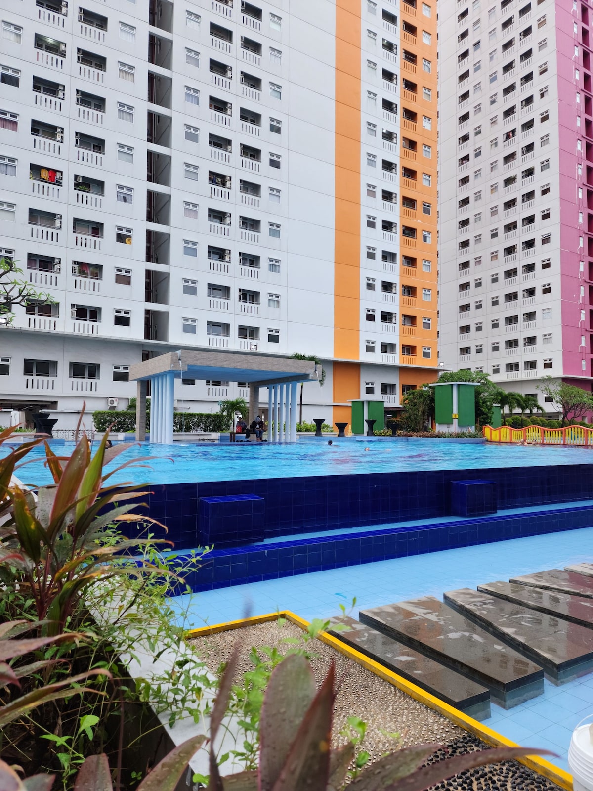 Luxuoso 2BR com vista para Green Pramuka Experimente o luxo neste apartamento mobiliado de dois quartos no centro de Jacarta , a 200 m da Praça Green Pramuka, no 27º andar da Torre Faggio. Comodidades: - Lojas próximas, estacionamento e acesso ao parque. - Somente para famílias; documento de identificação obrigatório. - Inclui utensílios de cozinha, aquecedor de água, materiais de limpeza e acesso à piscina. Regras: - Desligue os dispositivos ao sair. - Fogão a gás; garanta a segurança. - Lixo a 10m de distância. - Não é permitido fumar dentro ou na varanda.