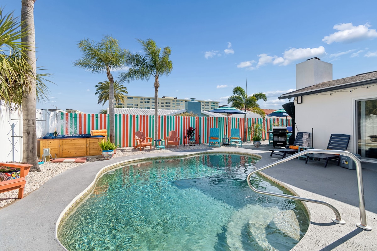 St Pete Traveling Paradise é um refúgio tropical a apenas 3 minutos de carro de Madeira e Redington Beach. Conforto no estilo Airbnb Plus com mobiliário premium, roupa de cama de qualidade de hotel e uma cozinha totalmente equipada. Desfrute de uma piscina aquecida de água salgada, banheira de hidromassagem, minigolfe privativo, churrasqueira, PlayStation 5 e uma tela de projeção de 120 polegadas para noites de cinema inesquecíveis, ideal para famílias e grupos. Reserve agora e relaxe mais!!