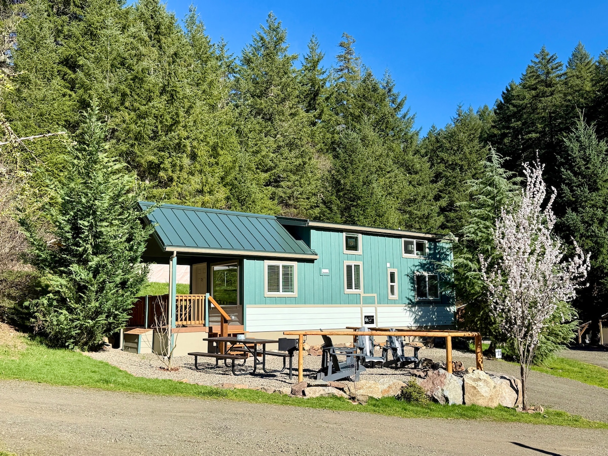 Cabanas rústicas na montanha - Glamping! Nossas encantadoras cabanas King estão perfeitamente localizadas ao longo do rio Umpqua Norte, na Floresta Nacional de Umpqua. Esta região das Cascatas de Oregon é comumente referida como "Porta de Esmeralda de Oregon" para o Lago Crater. Estamos localizados centralmente para a trilha North Umpqua, com fácil acesso a muitas trilhas, cachoeiras e as fontes termais de Umpqua. As cabanas King têm uma cama king size e um loft com cama de casal. A casa de banho/chuveiro compartilhada fica a poucos passos das cabanas.