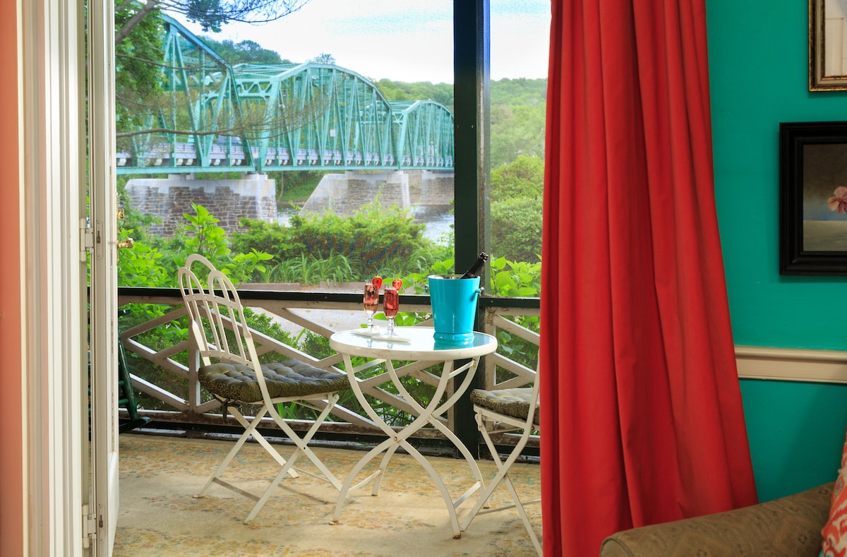 Rate inclusive of our multi-course hot breakfast & afternoon tea featuring homemade sweets & savories. Stay with the best & enjoy full service. Bridgeton House on the Delaware: a boutique hotel w/impeccable location & reputation. Nestled on the banks of the Delaware River - Bucks County's only riverside inn. No road, guard rail or canal to cross, the river is truly our backyard. Swim off our dock (beach towels provided), relax on the riverside terraces, or just enjoy the unmatched views.