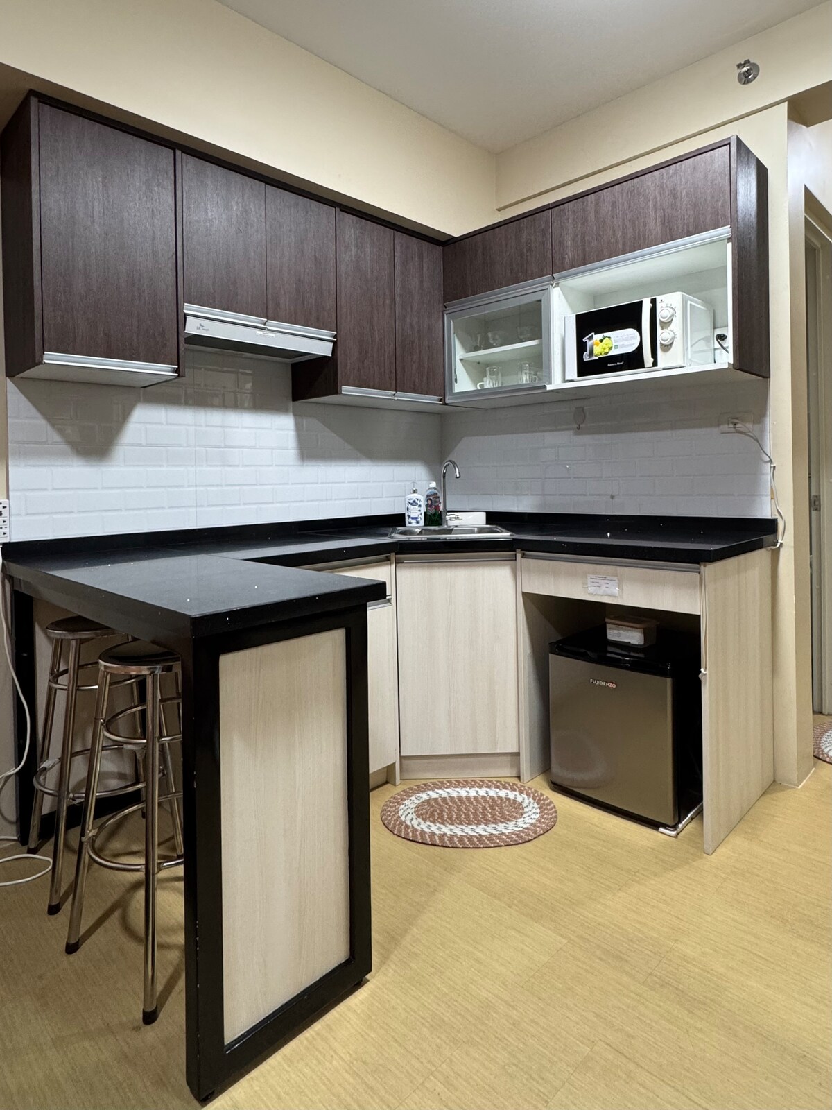 AVIDA TOWERS ASPIRA (Torre 1) - Estúdio para Alugar Localizado no coração da cidade de Cagayan de Oro — a poucos minutos do SM Downtown, do Centrio Ayala Mall, do Gaisano Mall, de restaurantes e escolas. O condomínio do Sr. JoRCH apresenta uma cama de tamanho completo com uma cama de solteiro extraível, uma Smart TV de 42 polegadas com Wi-Fi e Netflix, um fogão de indução, um forno de micro-ondas, uma panela elétrica de arroz, uma geladeira e utensílios de cozinha essenciais. O banheiro está equipado com um bidê e um aquecedor de água para maior praticidade.