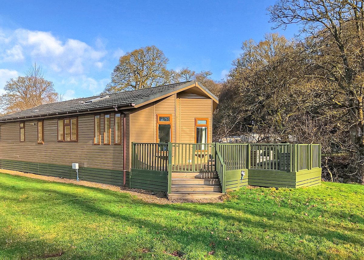 Desfrute de algum luxo neste Pemberton Rivendale Lodge de alta qualidade. Este grande alojamento de 20 pés x 40 pés (do tamanho de duas caravanas) fica à beira do lago e tem um enorme deck envolvente virado para o sul, que é o maior do parque. Completo com móveis de jardim de vime, o que significa que você pode desfrutar confortavelmente do sol durante todo o dia. Este chalé tem um interior de alta especificação completo com uma cozinha totalmente equipada, incluindo geladeira estilo americano, máquina de lavar louça de tamanho completo e máquina de lavar e secar.