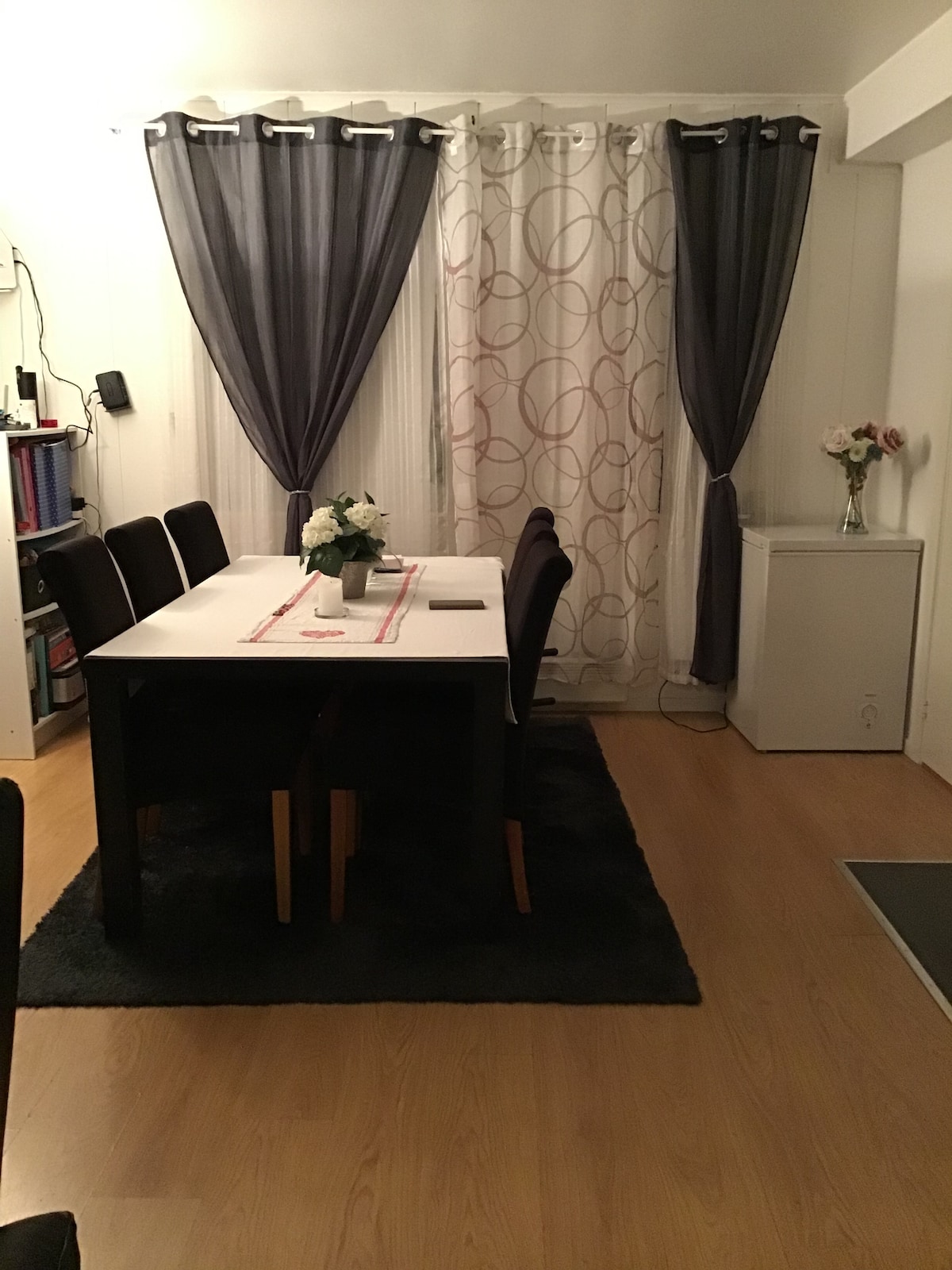 Cozy and modern apartment (66 sqm) for rent in the center of Stryn. The apartment is located on the 4th floor in Tonning Vest. The apartment contains most of what you need to have a pleasant stay in Stryn. Just outside Tonning Vest is a climbing park. Just across the road is the cultural center with a cozy cafe, swimming pool and cinema. In the building there is a physiotherapist, a dentist and groceries. 100m away there is a shopping centre, restaurants/cafes, doctor, pharmacy and bus station.