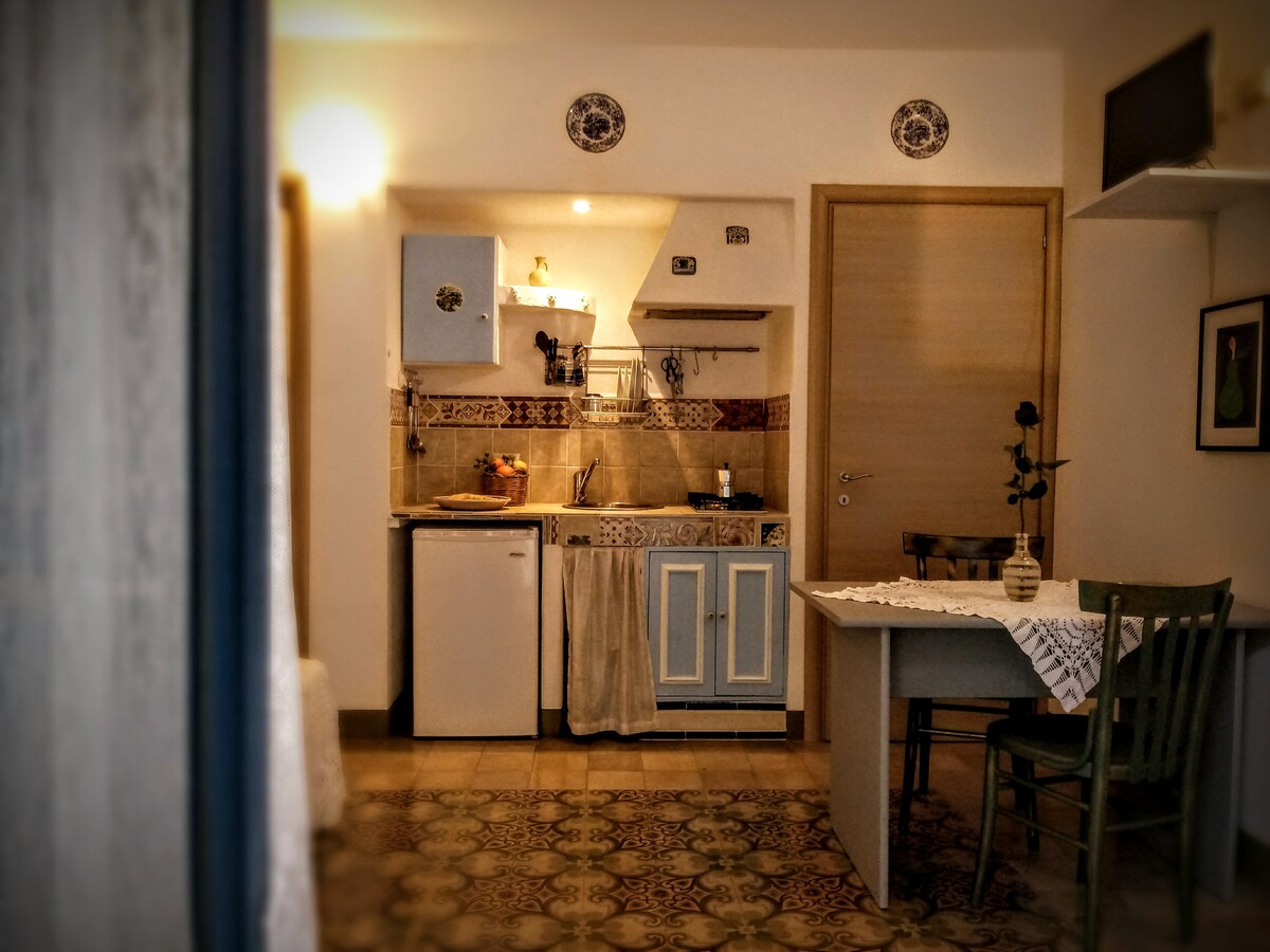 Delightful studio apartment in the historic center of Noto, on the very central via Cavour, 20 m from via Nicolaci (famous for the Infiorata), 80 m from the Cathedral, and 100 m from Corso Vittorio Emanuele. Especially suitable for a couple. Isolated from the noise from the large courtyard and raised above the main street, it offers all the comforts of a large house. Nothing is missing, it is also a washing machine.
