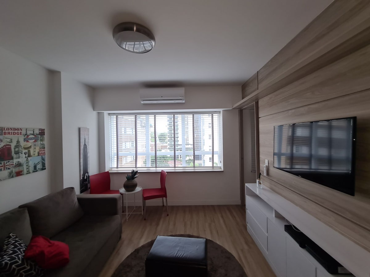 Flat confortável c/ mobiliário novo. Cozinha e sala integradas c/ sofá em L, mesa de trabalho, bancada c/ cadeiras, cama queen, ar condic. no quarto. Fornecimento de berço e banheira c/custo adicional. Cozinha equipada c/ cooktop, coifa, forno elétrico, microondas, geladeira, cafeteira nespresso e de coador, liquidificador, misteira e utensílios domésticos. TV SKY c/ 283 canais, wi-fi velocidade 500mb grátis. No bairro há vários supermercados, farmácias, cafeterias, restaurantes e shoppings.