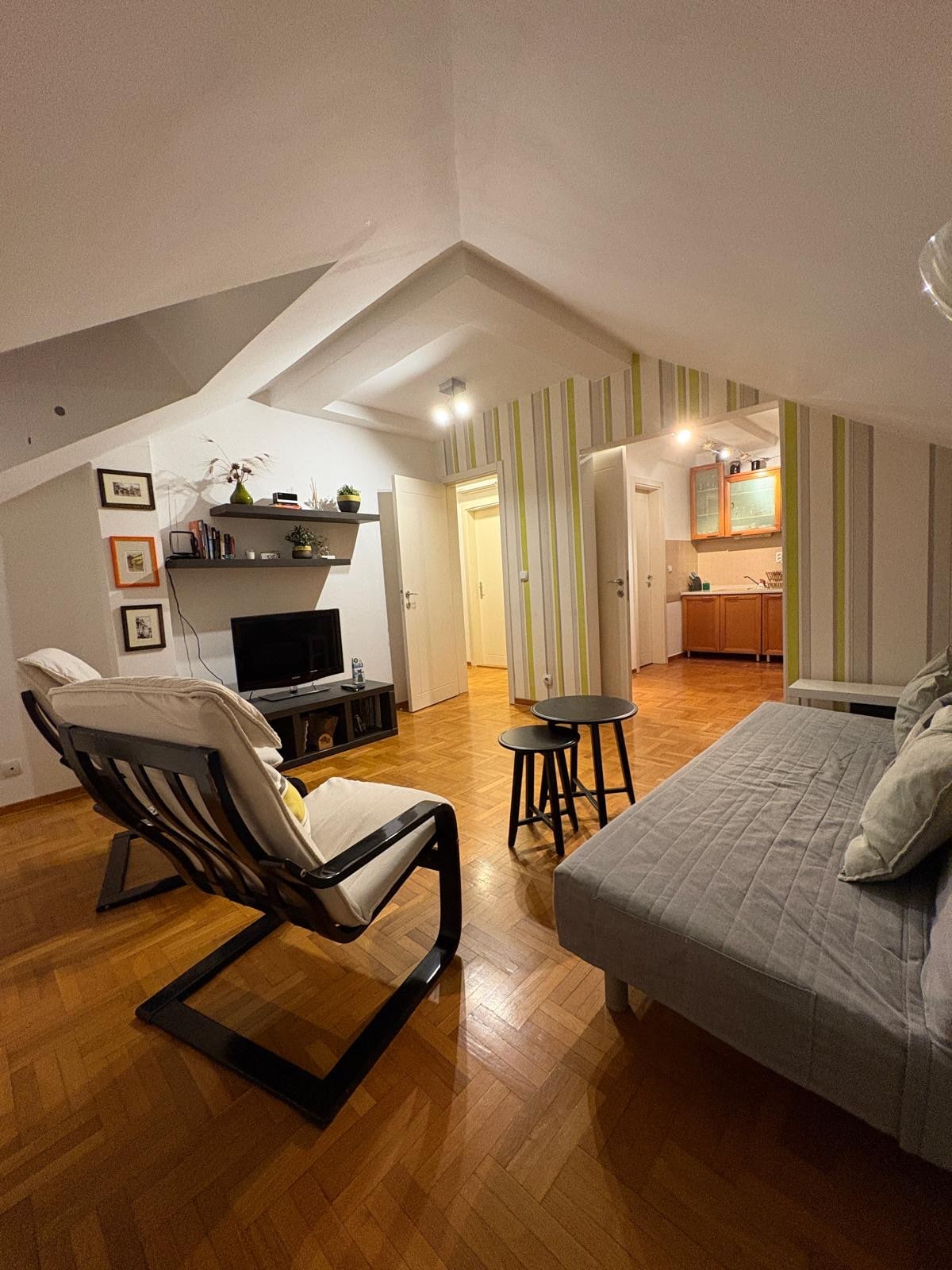 O apartamento é muito aconchegante e confortável para os hóspedes. É um apartamento de 30m2 com uma sala de estar, cozinha, banheiro e um terraço pequeno, mas muito agradável. Ele também tem uma cama confortável, TV, Wi-Fi gratuito, ar condicionado e tudo o que você precisa para se divertir. O apartamento está em uma localização muito boa! O centro da cidade e a cidade velha ficam a 6-10 minutos a pé. O shopping Promenada e o Centro Esportivo Spens ficam a 500 metros. A praia da cidade Strand no Danúbio fica a 1 km, a 15 minutos a pé.