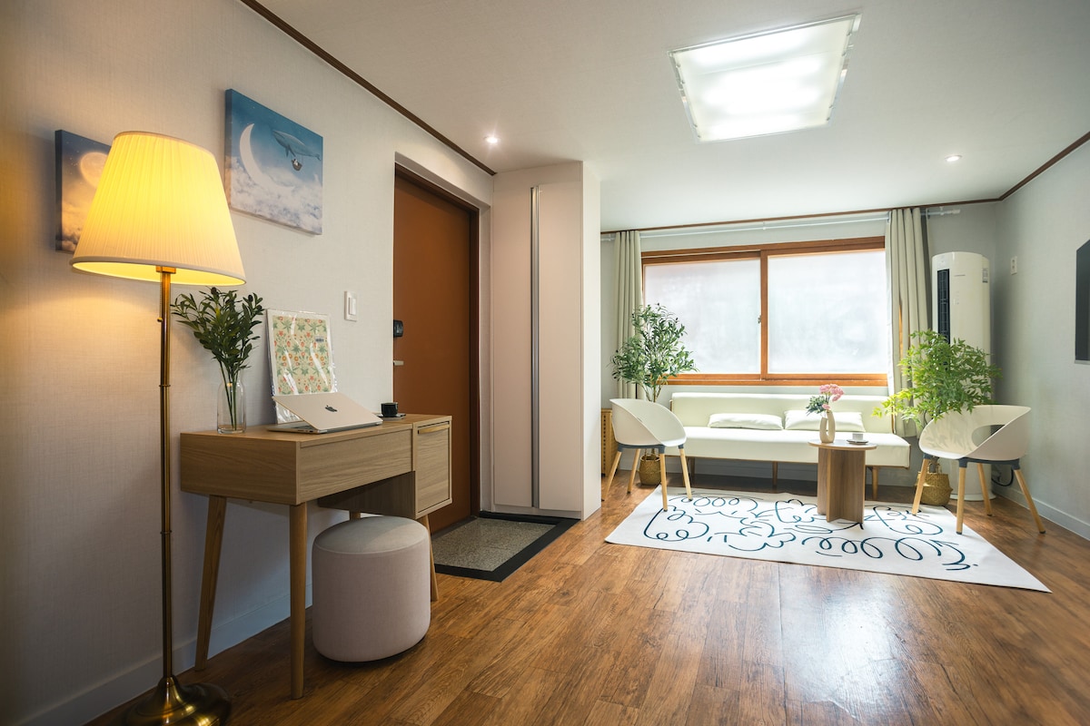 🌸 Pausar estadia Afaste-se do barulho e encontre o verdadeiro descanso. Como uma foto que captura seu melhor momento, que esta estadia se torne uma lembrança que você valorizará. Favorito ✔️ dos Hóspedes Avaliação de 5 estrelas em limpeza, conforto e estilo. Ideal para casais, estadias individuais e visitas familiares. 🍀 Aconchegante e inspirado na natureza Loft elegante com madeira Hinoki para uma vida tranquila. As fotos de quatro artistas dão um charme visual ao lugar. 🚆 Fácil acesso à cidade Cheongnyangni 20 min, Itaewon 30 min, Myeongdong 40 min 🏞️ Atração Relaxe em Uireung, um Patrimônio da UNESCO