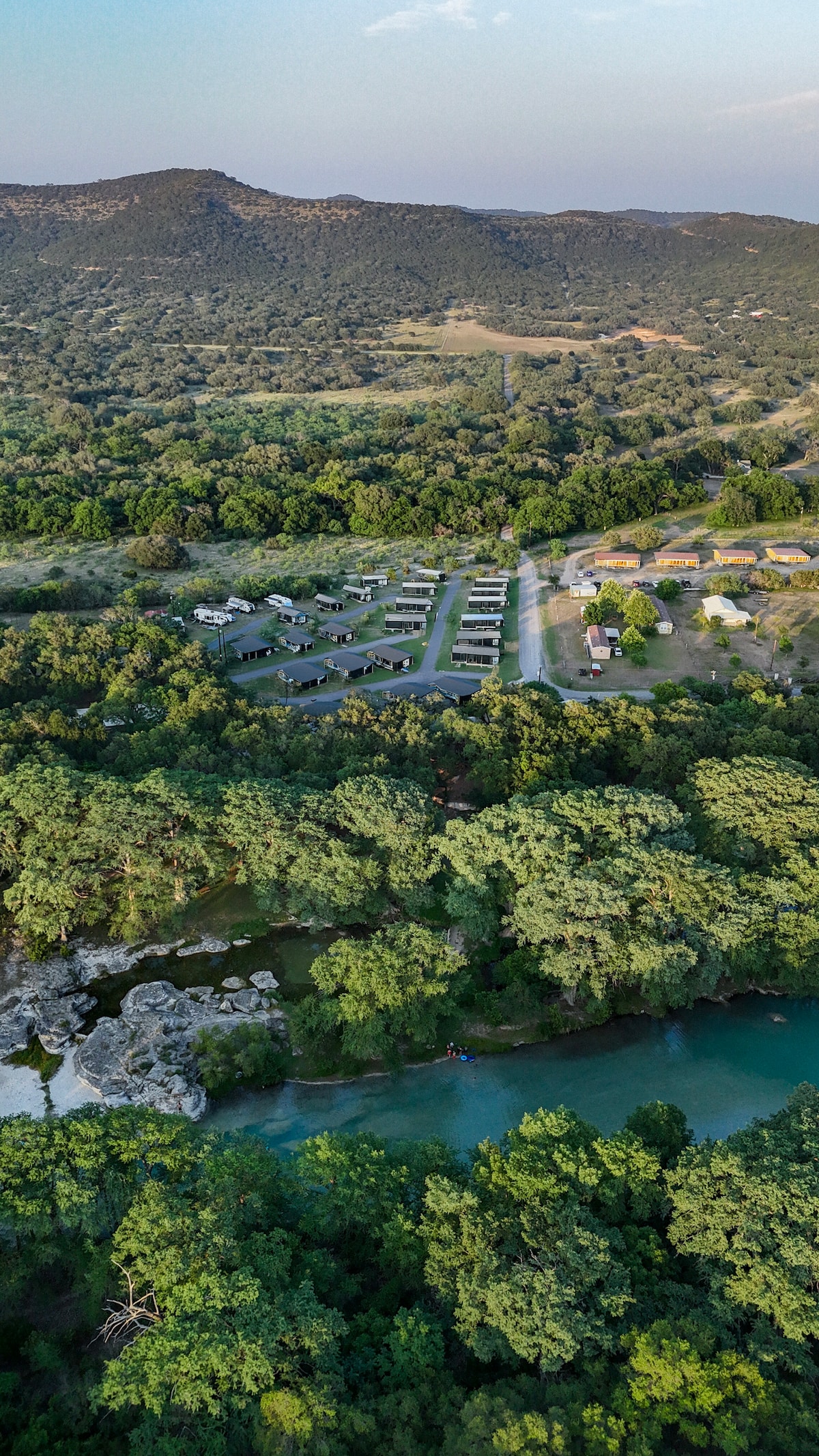 Fuja para nossa cabana aconchegante situada em nosso rancho Texas Hill Country de 6.000 acres. Perfeito para um retiro tranquilo, esta cabana possui uma cozinha bem equipada, um banheiro tipo spa e uma confortável cama queen size. Os hóspedes podem explorar quilômetros de trilhas para caminhadas e passeios, mergulhando na natureza. Se você está procurando aventura ou relaxamento, esta estadia oferece tudo. Certifique-se de verificar o cronograma de atividades detalhado abaixo para garantir que suas atividades planejadas estejam alinhadas com nossas ofertas.