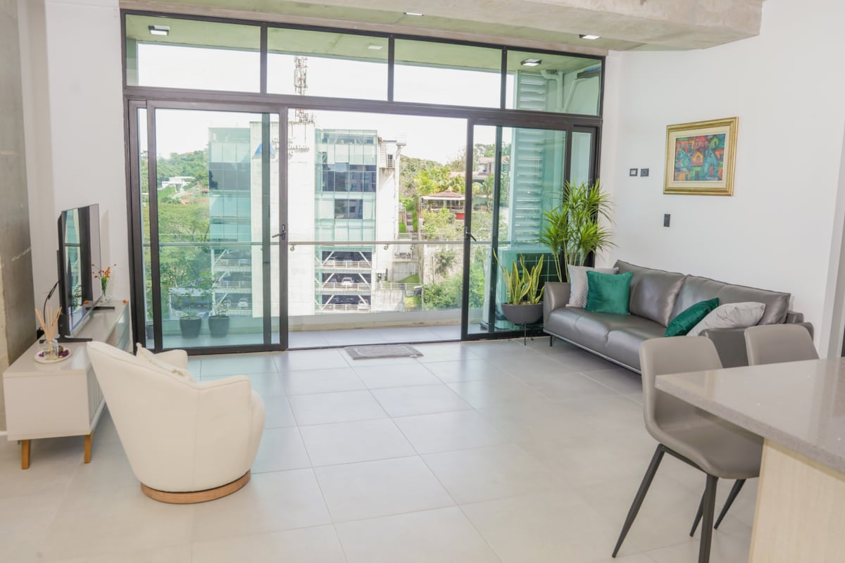 O edifício (AVITAT ONE) está localizado no bairro de Lomas de San Francisco, um lugar muito central na cidade de San Salvador, com fácil acesso às principais rodovias para o aeroporto e a praia. Fica perto dos principais centros comerciais, supermercados, postos de gasolina, restaurantes e museus. O apartamento está bem mobiliado para satisfazer as suas necessidades. Tem vistas espetaculares do vulcão e da cidade de San Salvador. Os nossos hóspedes têm acesso a comodidades do edifício: academia, sala de conferências e piscina parcialmente coberta.