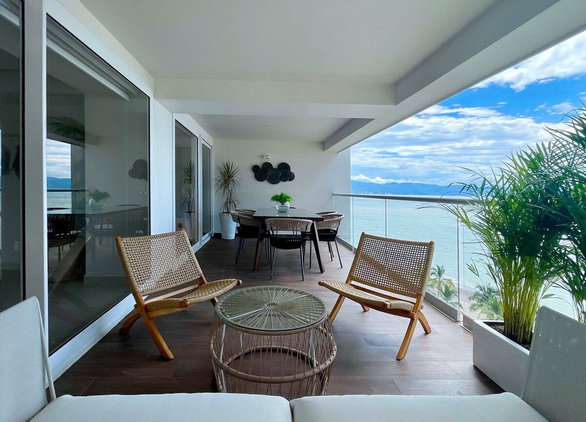 Incrível 3 quartos, 3,5 banheiros. o condomínio está no 8º andar do condomínio à beira-mar sayan Beach, que tem o melhor telhado em todo puerto vallarta! Há grandes pisos de mármore branco em todo o apartamento com som surround bose, internet de alta velocidade, 4 tv´ s, louça Usa, Vitra e mobiliário Restoratio Hardware, vistas espetaculares para a baía e praia los muertos, o edifício tem 3 piscinas no lobby, além de uma piscina infinita no terraço, 2 jacuzzies, sala de sauna, sala de massagens e ginásio.