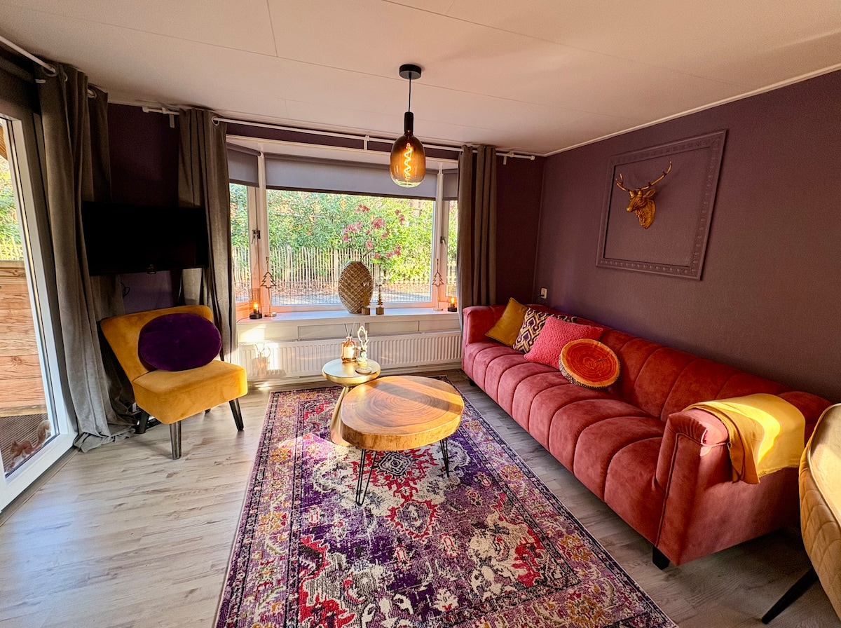 Nossa acolhedora cabana de madeira isolada para até 2 adultos + possivelmente 2 crianças + bebê está localizada em um jardim privado arborizado tranquilo com sua própria entrada para um carro no acolhedor Ermelo no Veluwe. A base perfeita para andar de bicicleta ou caminhar por vastas florestas e charnecas. O centro com várias lojas, bons restaurantes está a uma curta distância a pé. Fica perto de Veluwemeer, Staverden e Harderwijk, um lugar maravilhoso para explorar os belos arredores ou para recarregar as energias!
