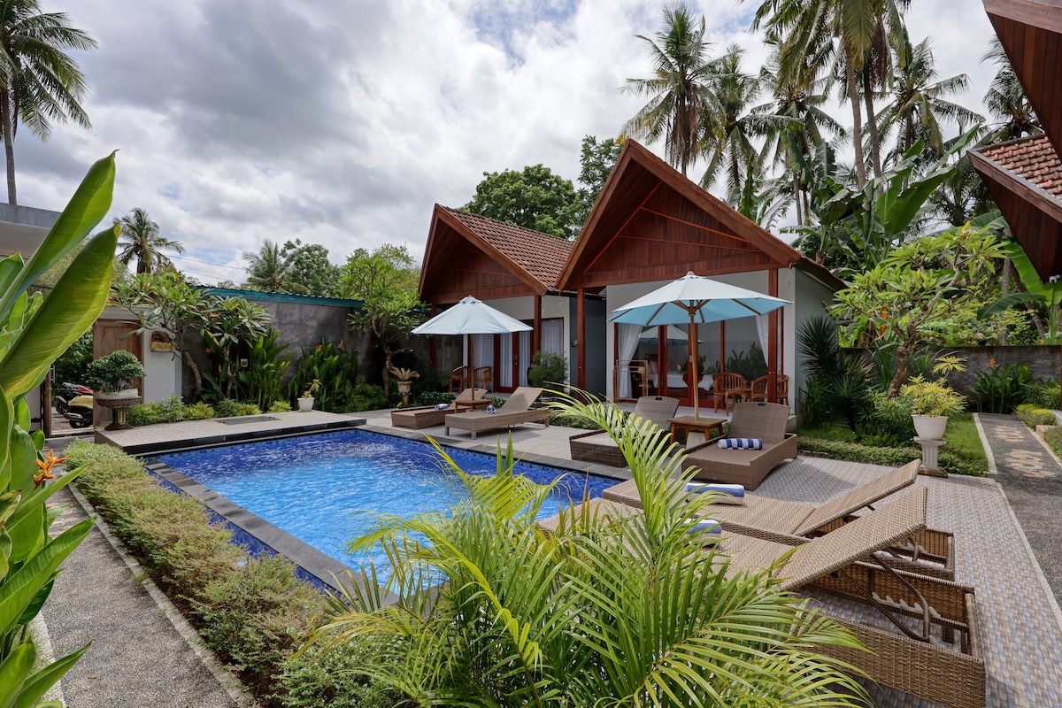 Fique a apenas 5–10 minutos a pé do Porto de Banjar Nyuh – não precisa de táxi! Desfrute de quartos limpos com ar condicionado forte, água quente, além de café/chá grátis durante todo o dia. Nossos anfitriões super úteis ajudam com tudo: passagens de barco, aluguel de scooters, viagens de mergulho com snorkel – tudo organizado no local. Vantagens extras: + traslado gratuito de scooter para o porto, + armazenamento de bagagem e + água potável gratuita. Uma vibração local natural – tampões de ouvido disponíveis, se necessário!