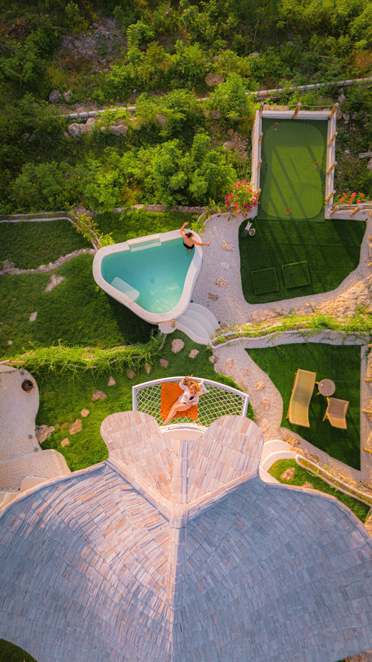 Acorde com vista para o mar e o Monte Agung em sua vila privativa em jardins tropicais. A Villa Aluna oferece um refúgio intimista, mas luxuoso, com um quarto espaçoso, banheiro semi-aberto e uma piscina de mergulho privativa em um jardim paisagístico. Perfeita para luas de mel e escapadas românticas, a vila inclui um café da manhã flutuante gratuito. Relaxe nas espreguiçadeiras, sinta a brisa sob o telhado de bambu ou reserve mergulho com snorkel e passeios pela ilha conosco. Descubra o luxo do Mimpi Villas Penida, onde o romance encontra a natureza.