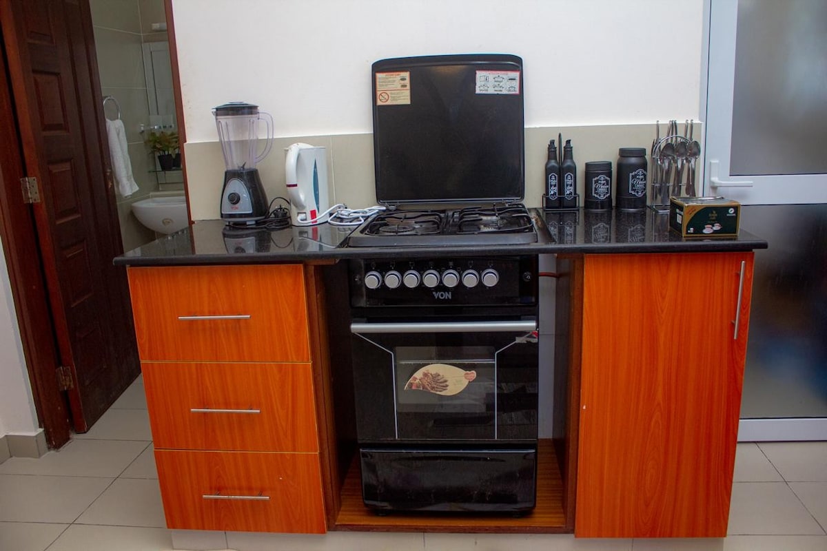Apartamento de luxo moderno em Nyali ✔ Wi-Fi rápido, piscina e cozinha totalmente equipada ✔ Perfeita para casais, viagens de negócios e estadias longas O espaço oferece uma sala de estar moderna com uma Smart TV grande e Netflix, ar-condicionado em todos os cômodos e um quarto aconchegante com roupa de cama premium. Seja para trabalhar ou para relaxar, tudo está preparado para uma estadia perfeita. O 🌴 que você vai adorar: • Área de estar iluminada e espaçosa • Cama queen size confortável • Wi-Fi rápido e confiável. • Varanda particular com vista para o mar • Acesso à piscina • Ar condicionado