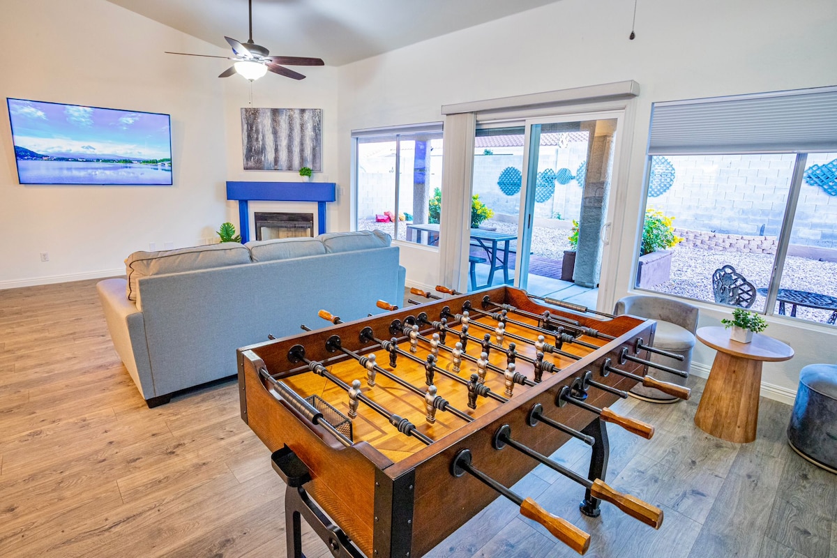 Consistente 5⭐ e Favorito dos Hóspedes por um motivo! Com esta casa você tem 15 camas, piscina aquecida, banheira de hidromassagem, mesa de bilhar, cozinha de chef, mini golfe, fliperamas e jogos, 10 TVs inteligentes, churrasqueira e muito mais! Esta casa grande, bem decorada e estilo resort pode hospedar todo o seu grupo sob 1 teto confortavelmente. Você será o herói do seu grupo por reservar. E fica a menos de 10 minutos da Strip ou da Fremont Street! Perfeito para reuniões de família, viajantes de negócios ou grupos de casamento. Reserve agora antes que as datas sejam tomadas!