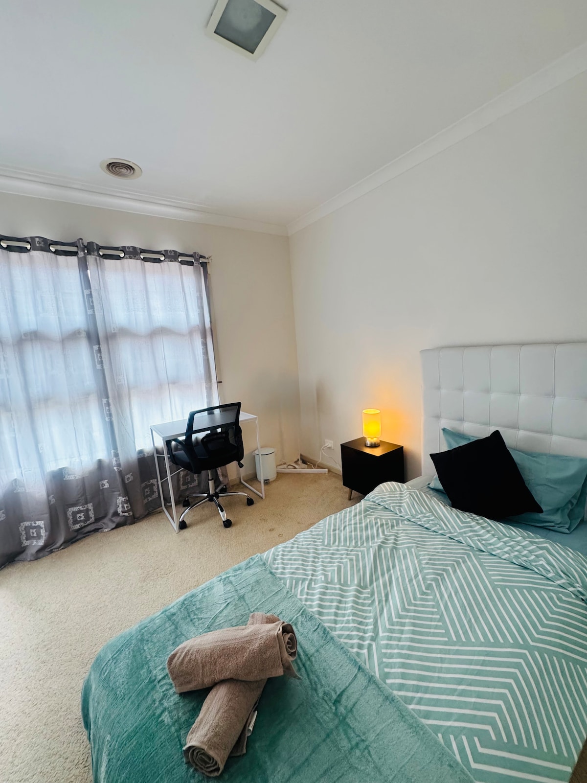 Your private Melbourne escape is a stylish self contained unit + 2 separate rooms just for you! It is an air conditioned retreat with parking, your own independent living area with a home theatre system and reclining sofas, a separate bedroom with ensuite, walk in robe and dedicated workspace. You’ll have your own entrance with a lockable door, which is easily accessed via the side of the house. Unwind in a peaceful 2 room suite featuring a home cinema, comfy bed and your own private access.