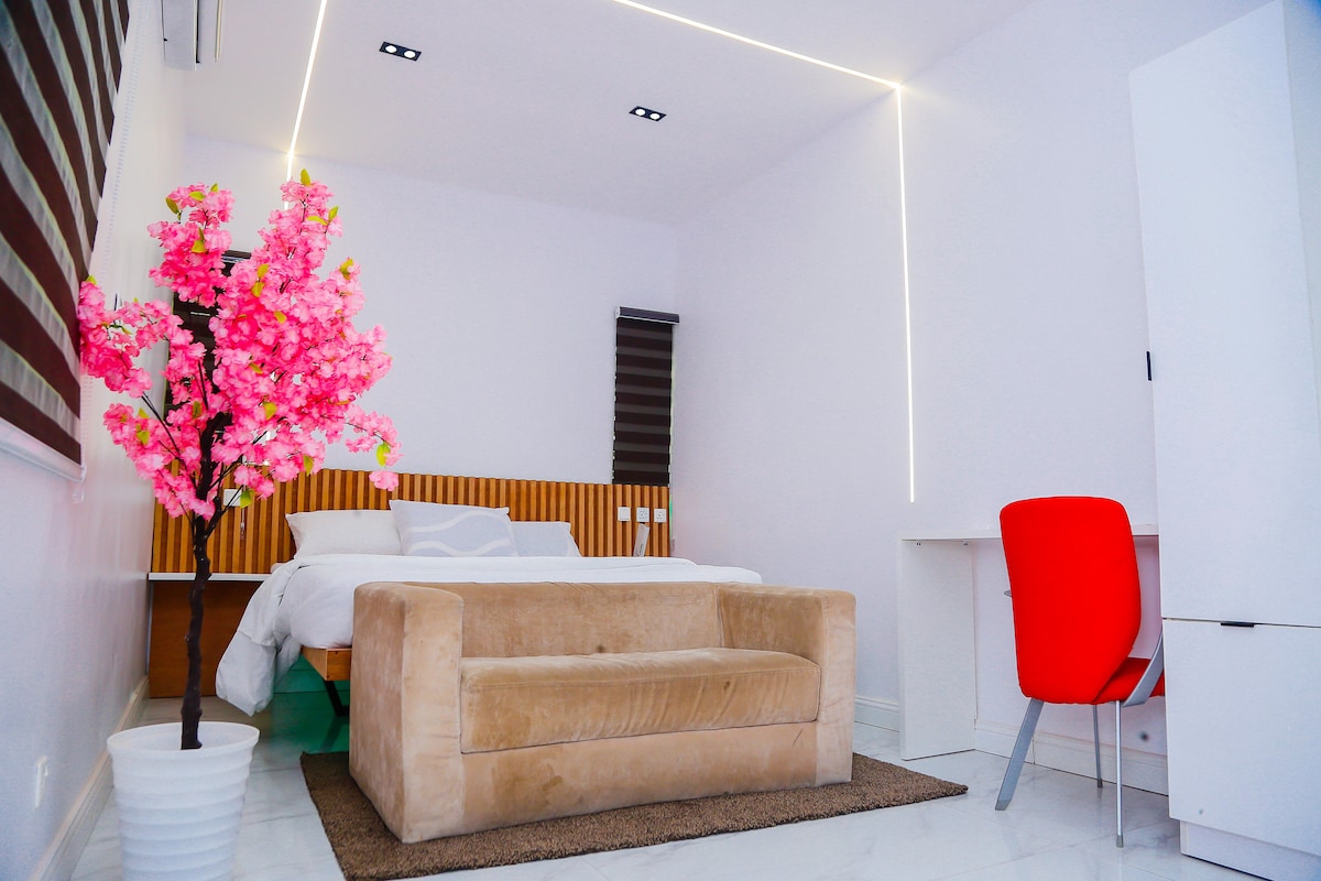 Gracias Adios Apartments – Conforto recém-construído em Abeokuta! Bem-vindo ao Gracias Adios Apartments, localizado na serena Ibara GRA Extension. Nosso complexo de 4 apartamentos recém-construído oferece espaçosos apartamentos de 1 quarto e sala de estar, cuidadosamente projetados para conforto e conveniência. Divirta-se com internet ilimitada e Netflix. Cada apartamento é totalmente atendido e decorado com bom gosto, com todos os itens básicos para uma estadia relaxante e agradável.